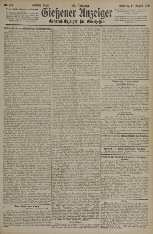 Regionale Zeitungen aus der Zeit des Ersten Weltkrieges