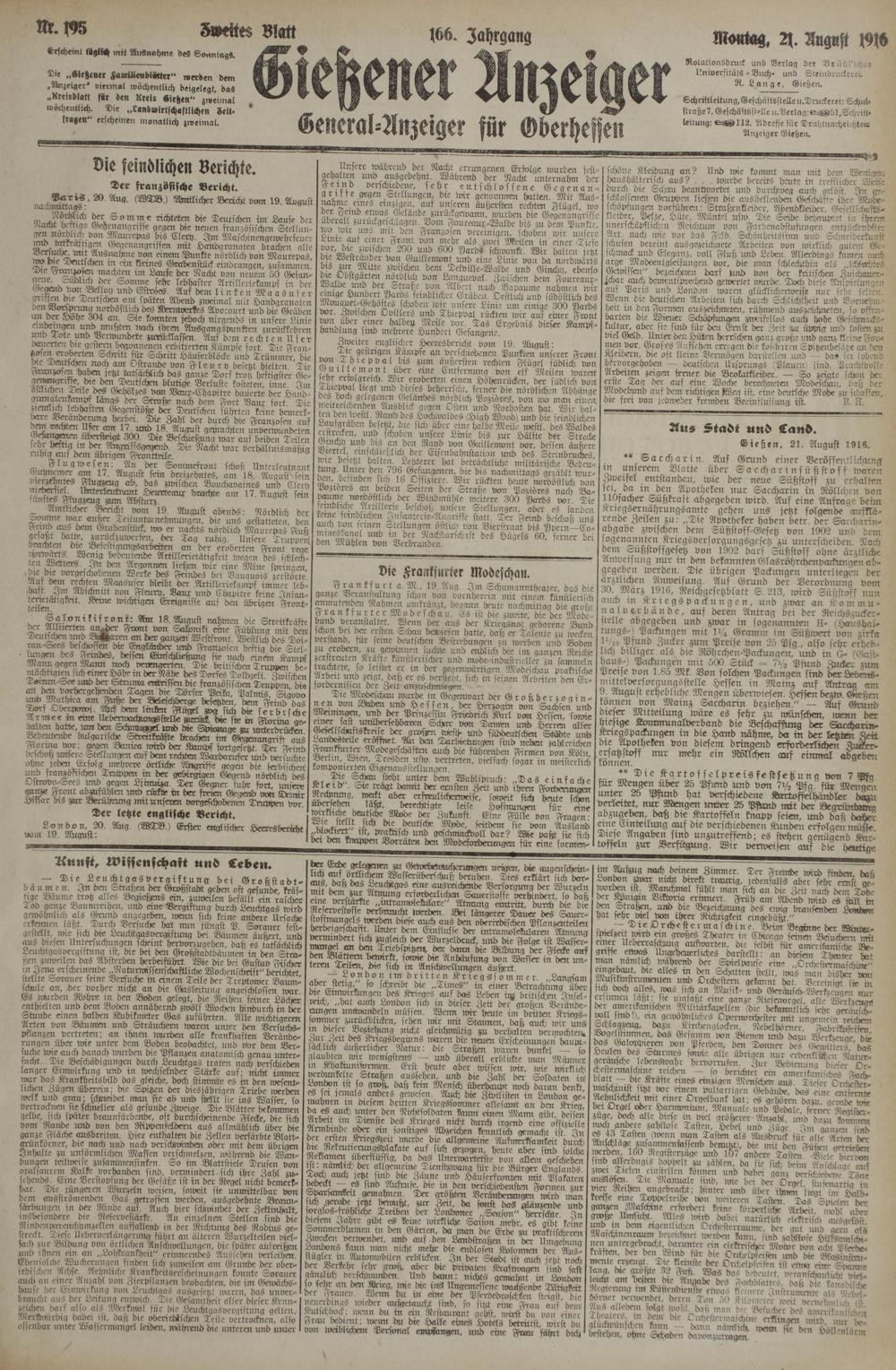 Regionale Zeitungen aus der Zeit des Ersten Weltkrieges