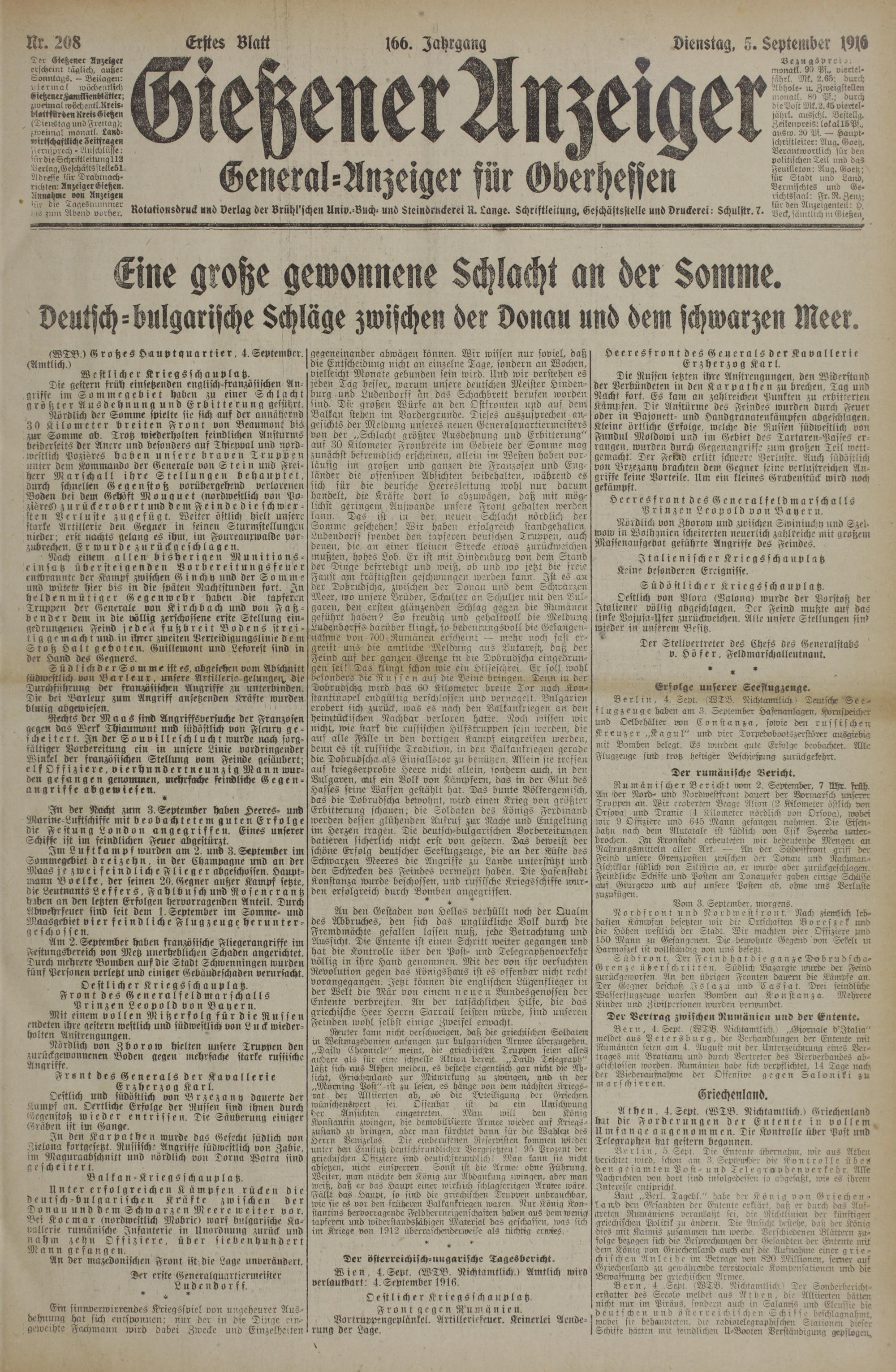 (5.9.1916) Erstes Blatt