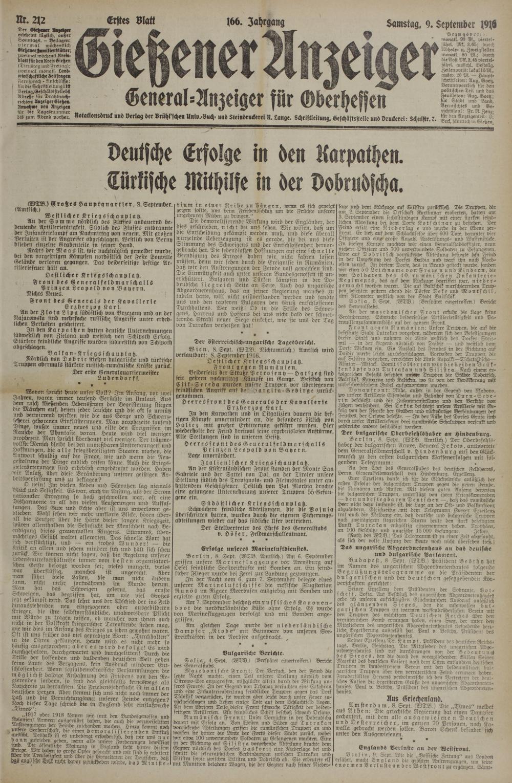 Regionale Zeitungen aus der Zeit des Ersten Weltkrieges