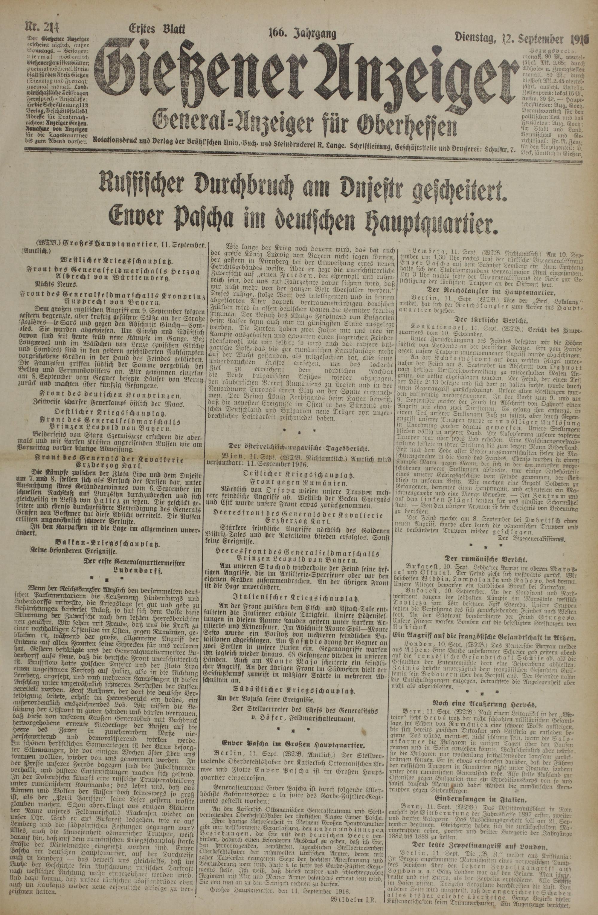(12.9.1916) Erstes Blatt