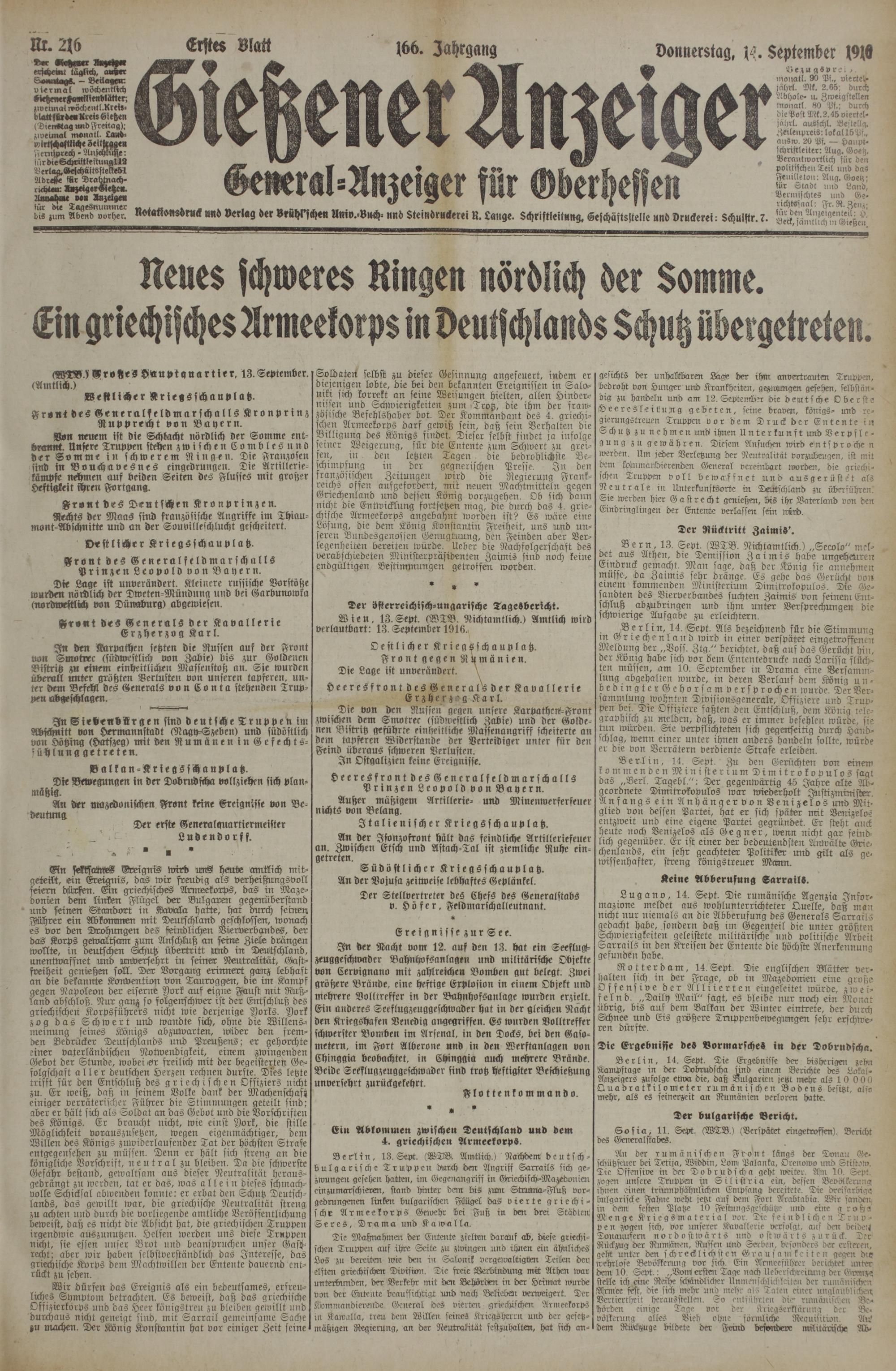 Der Erste Weltkrieg im Spiegel hessischer Regionalzeitungen