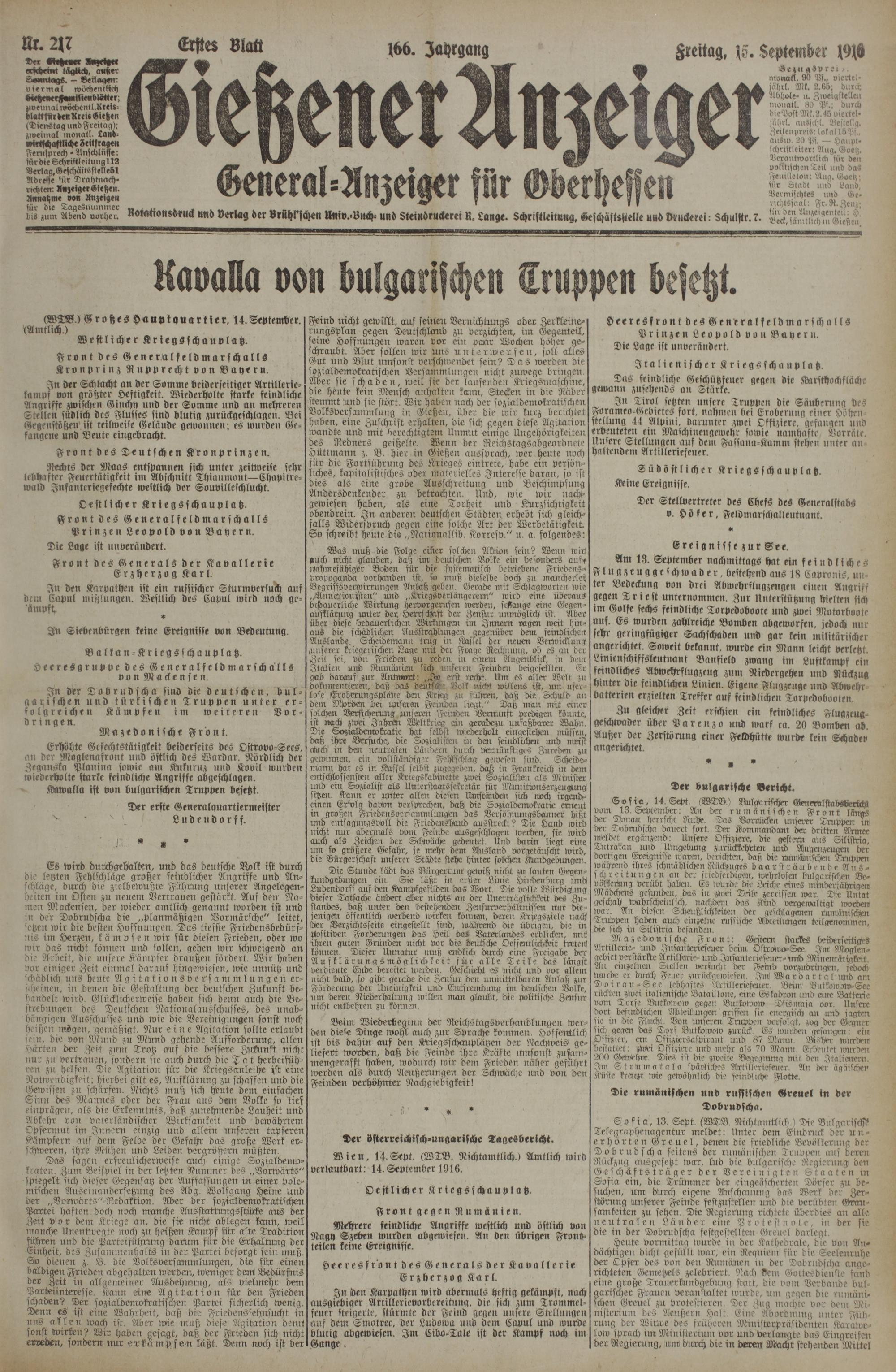 (15.9.1916) Erstes Blatt