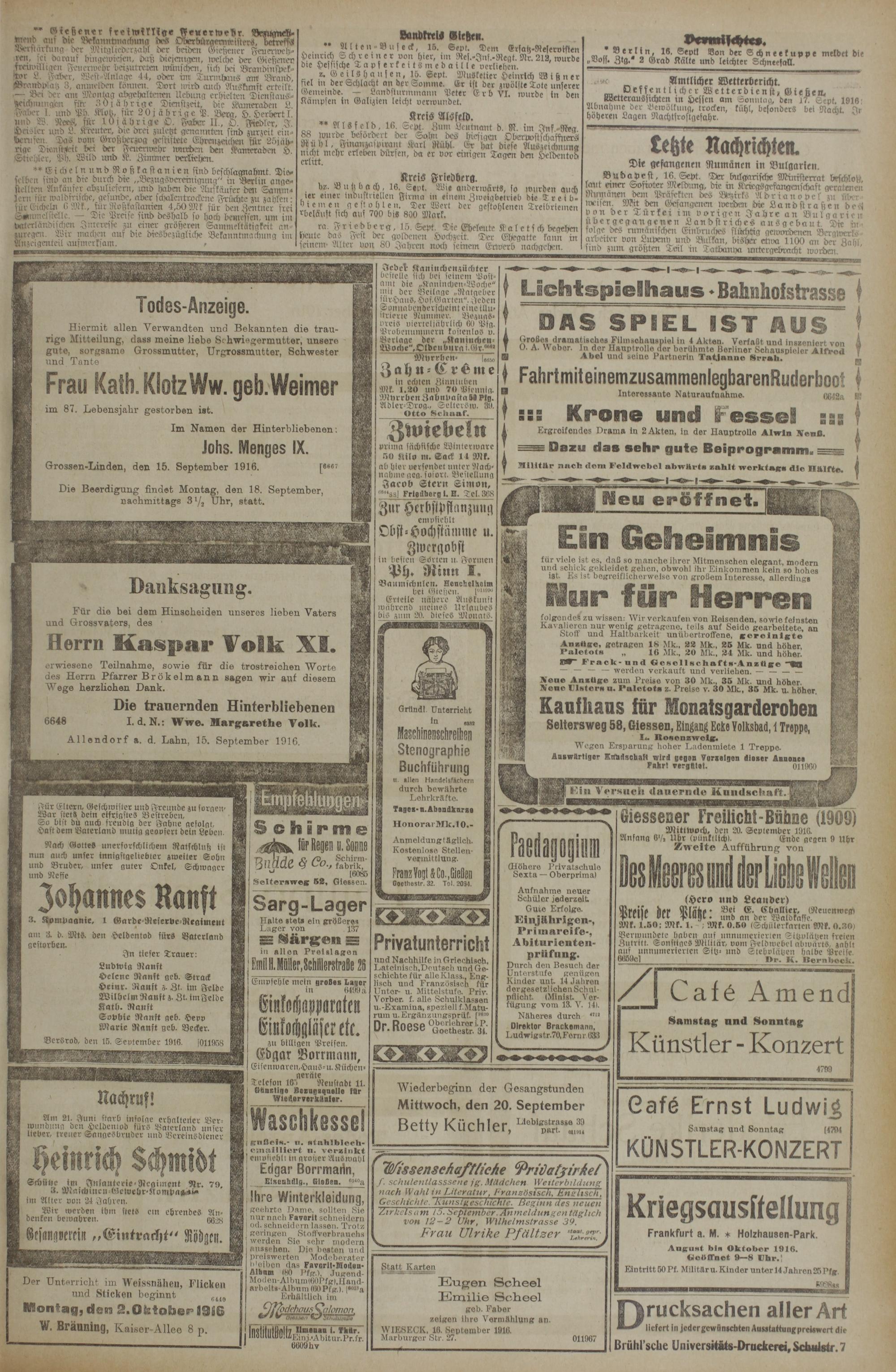 (16.9.1916) Erstes Blatt