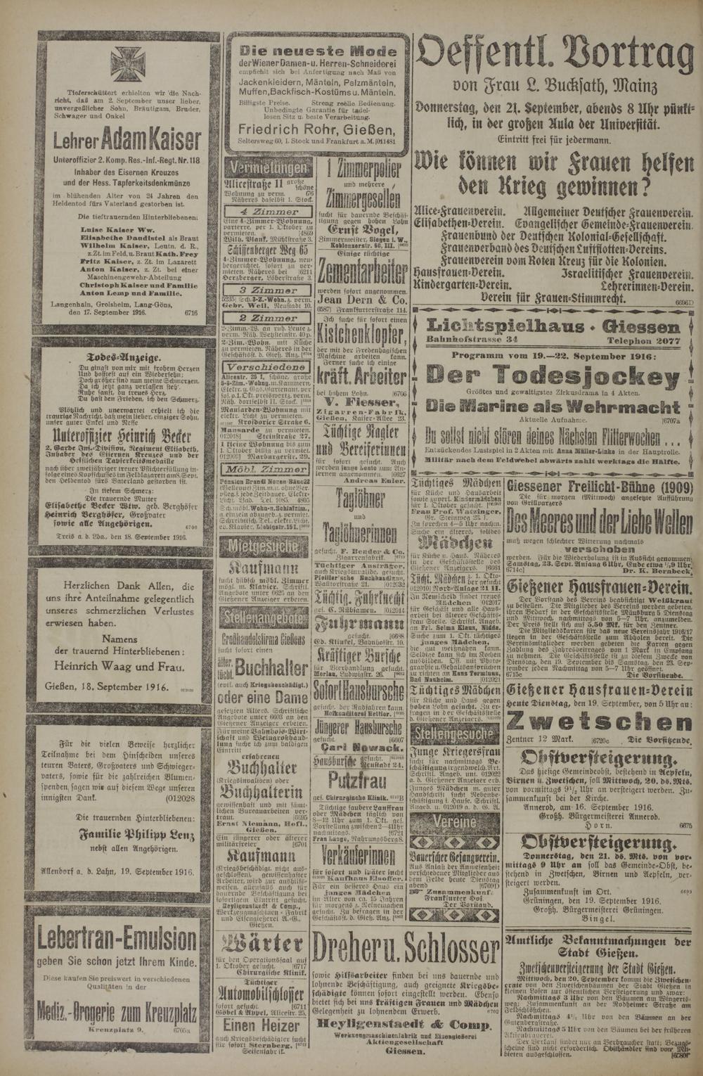 (19.9.1916) Erstes Blatt