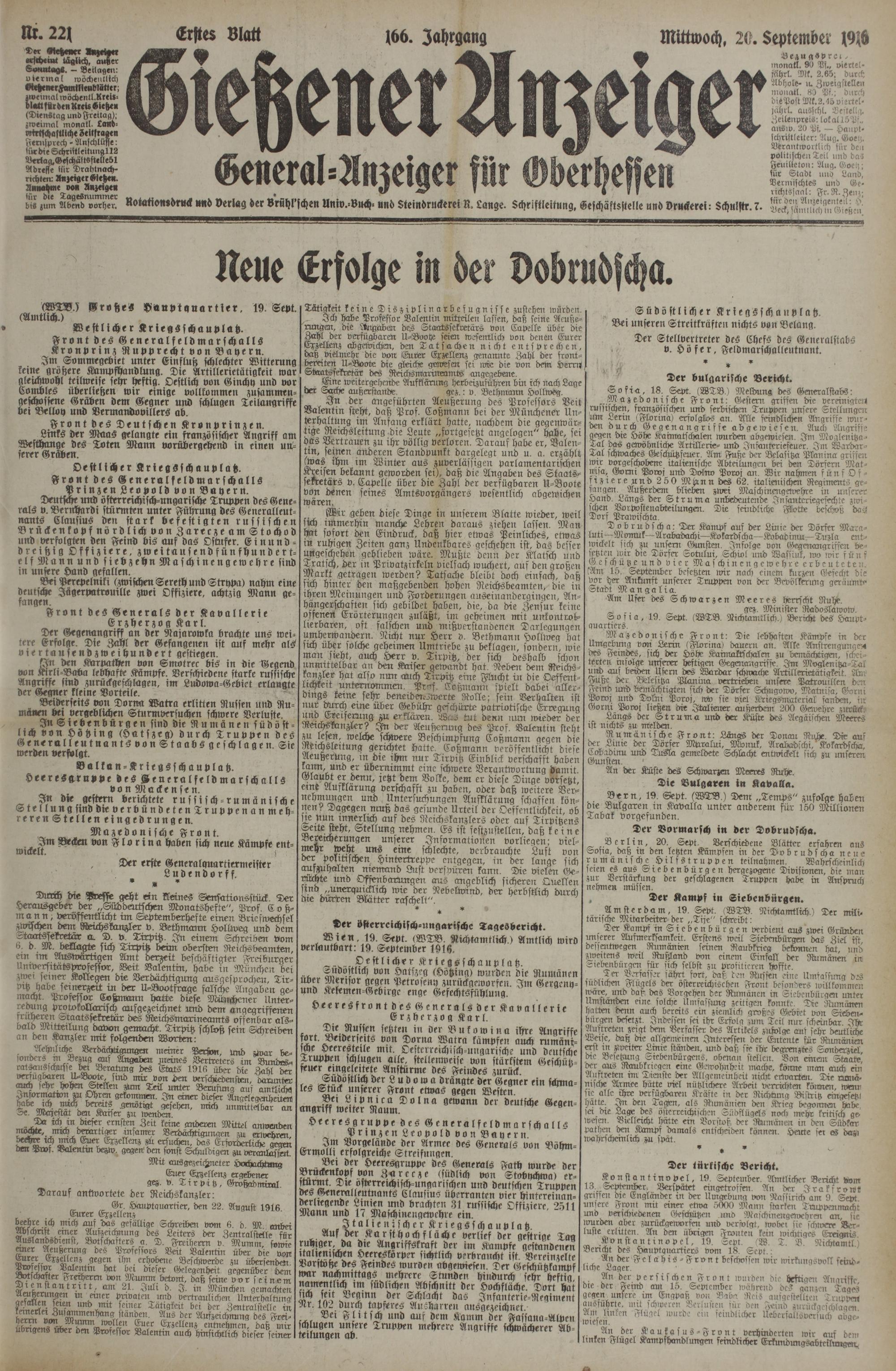 (20.9.1916) Erstes Blatt
