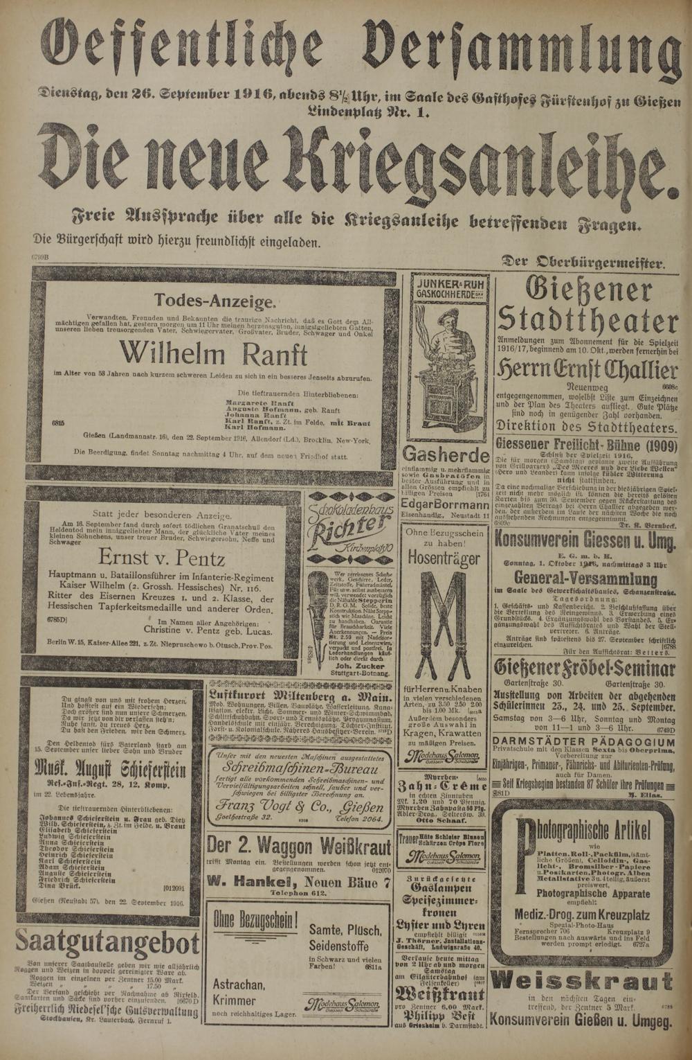 (22.9.1916) Erstes Blatt
