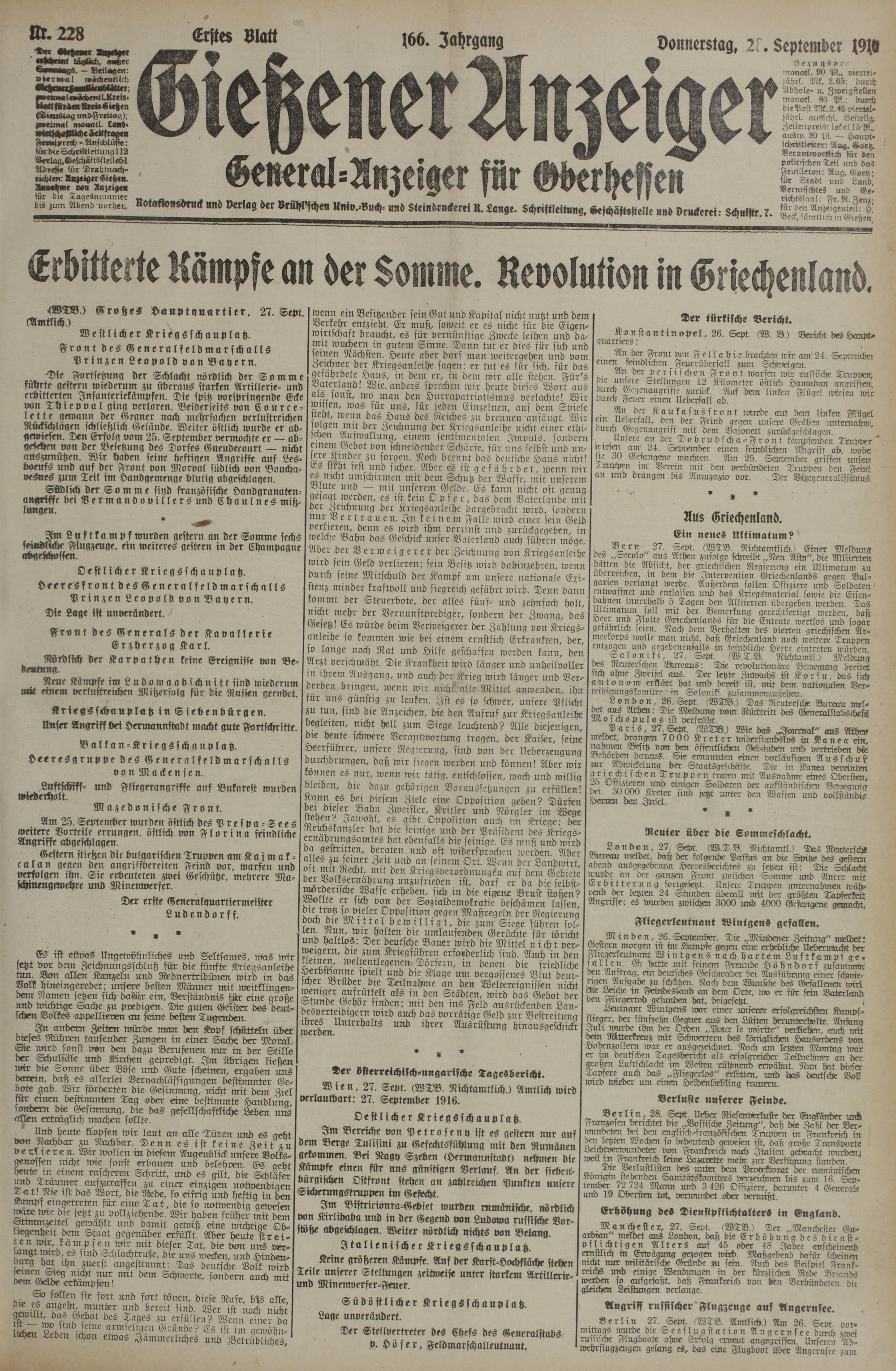 (28.9.1916) Erstes Blatt