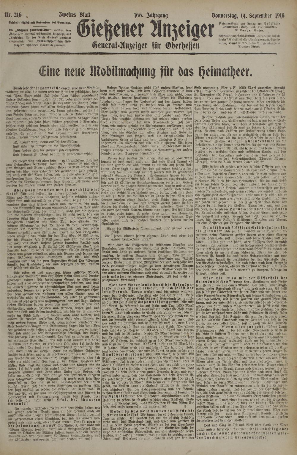 Der Erste Weltkrieg im Spiegel hessischer Regionalzeitungen