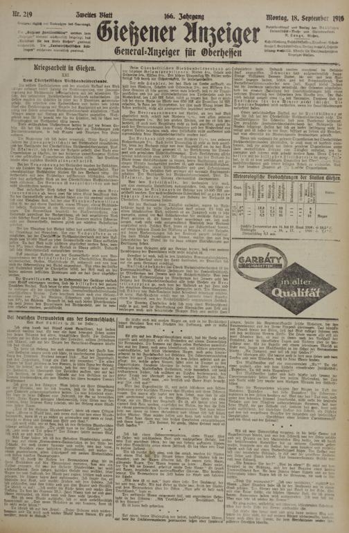 Regionale Zeitungen aus der Zeit des Ersten Weltkrieges