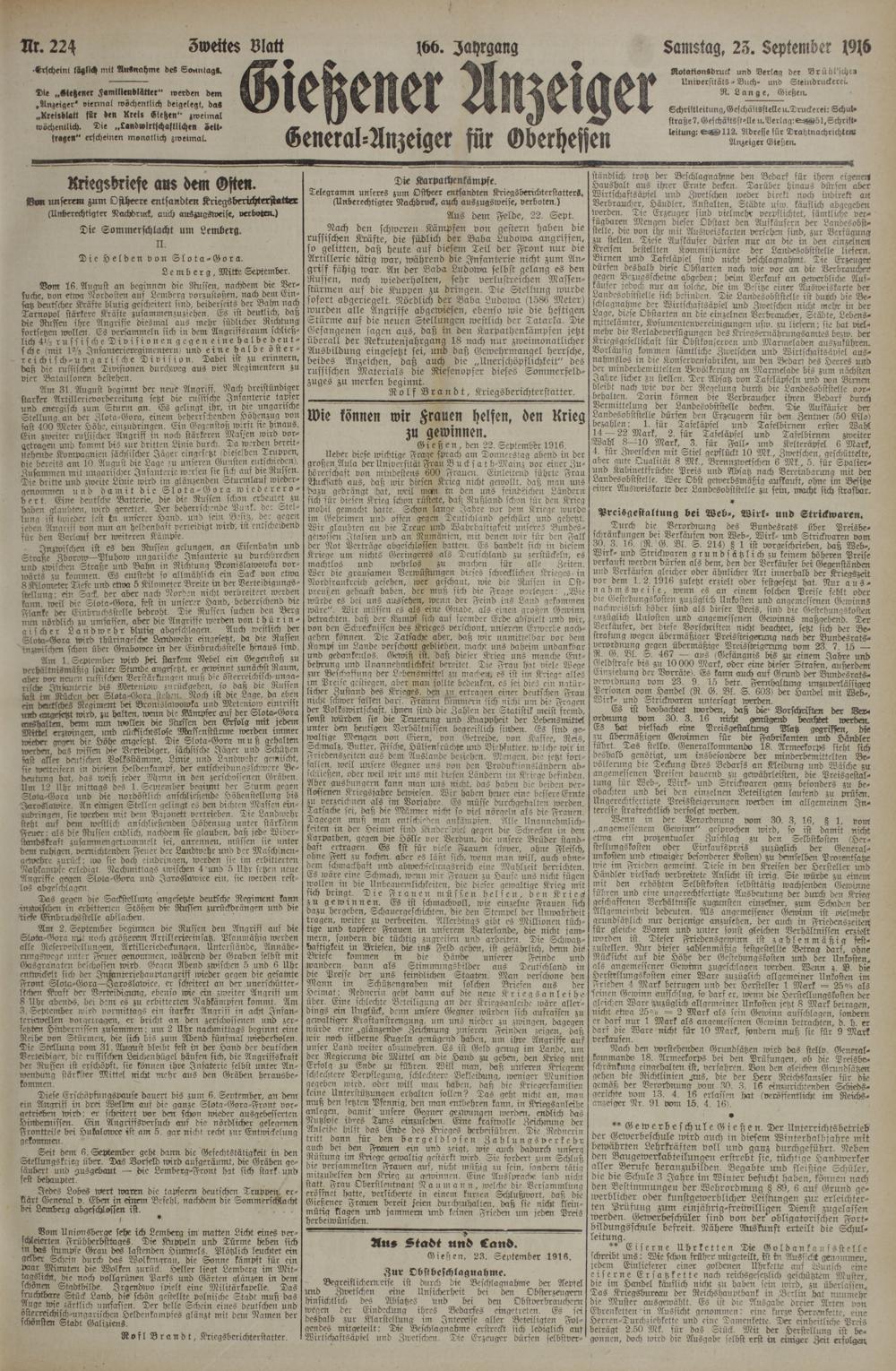 Regionale Zeitungen aus der Zeit des Ersten Weltkrieges