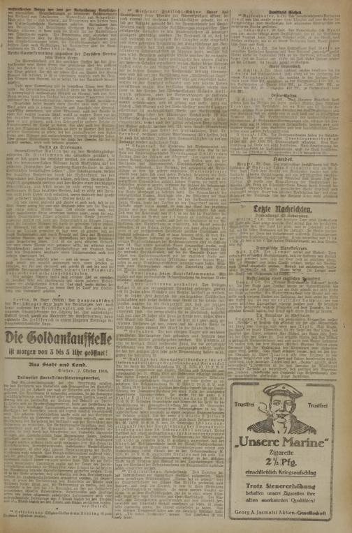 Regionale Zeitungen aus der Zeit des Ersten Weltkrieges