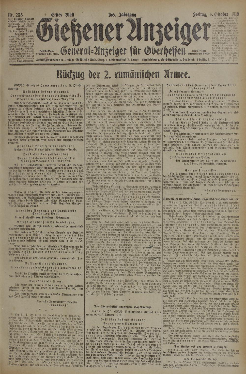 Regionale Zeitungen aus der Zeit des Ersten Weltkrieges