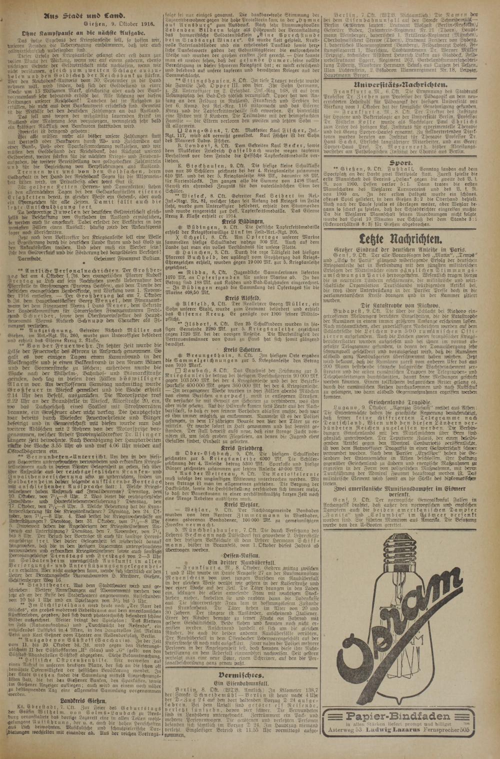 (9.10.1916) Erstes Blatt