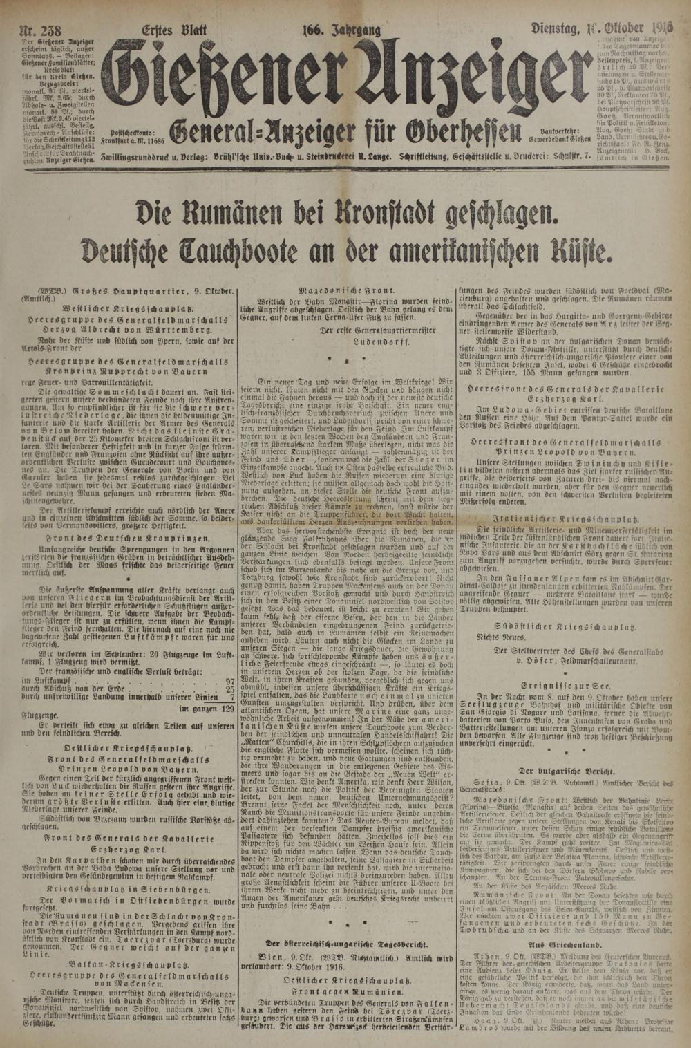 Regionale Zeitungen aus der Zeit des Ersten Weltkrieges