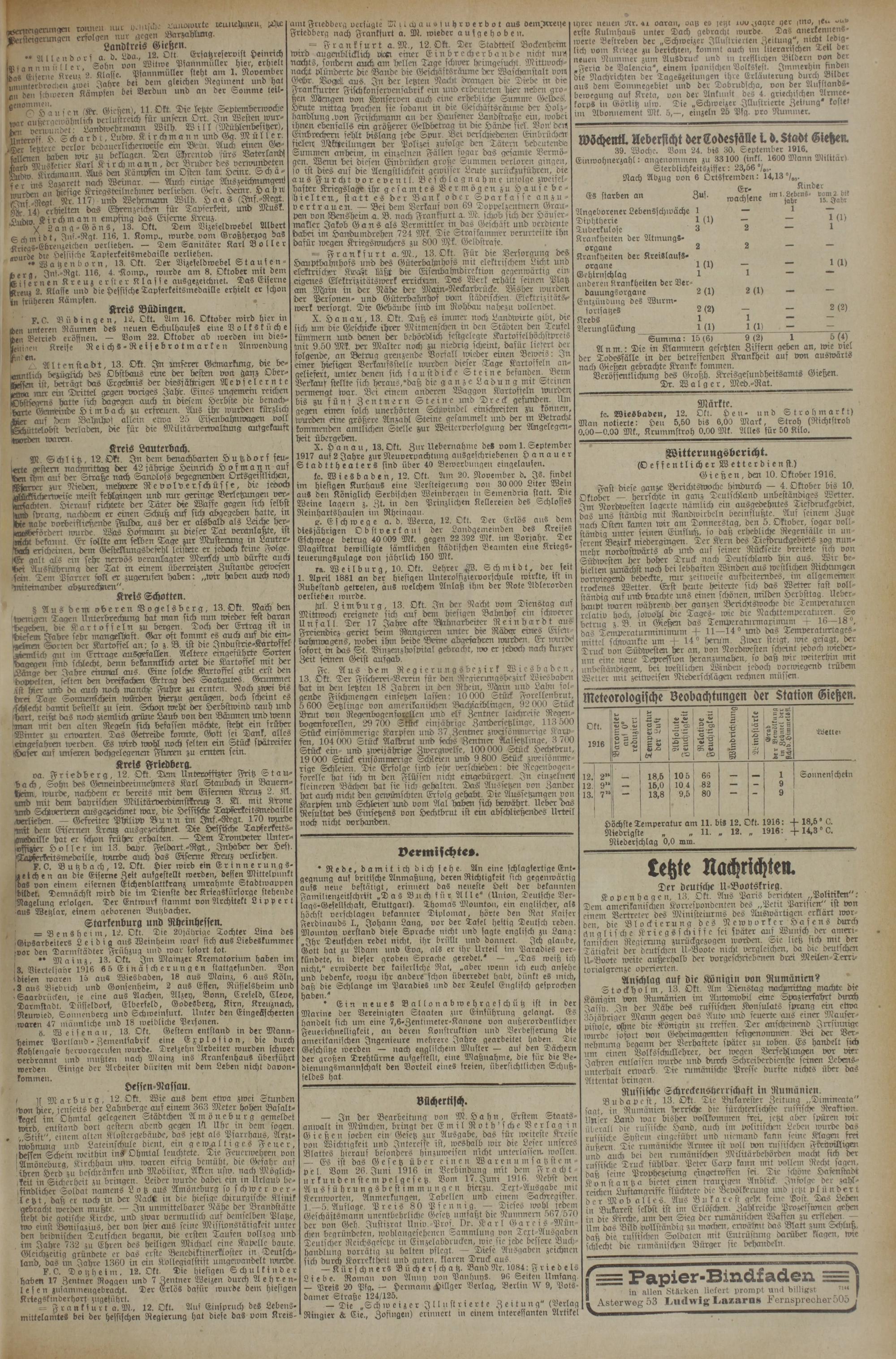 (13.10.1916) Erstes Blatt