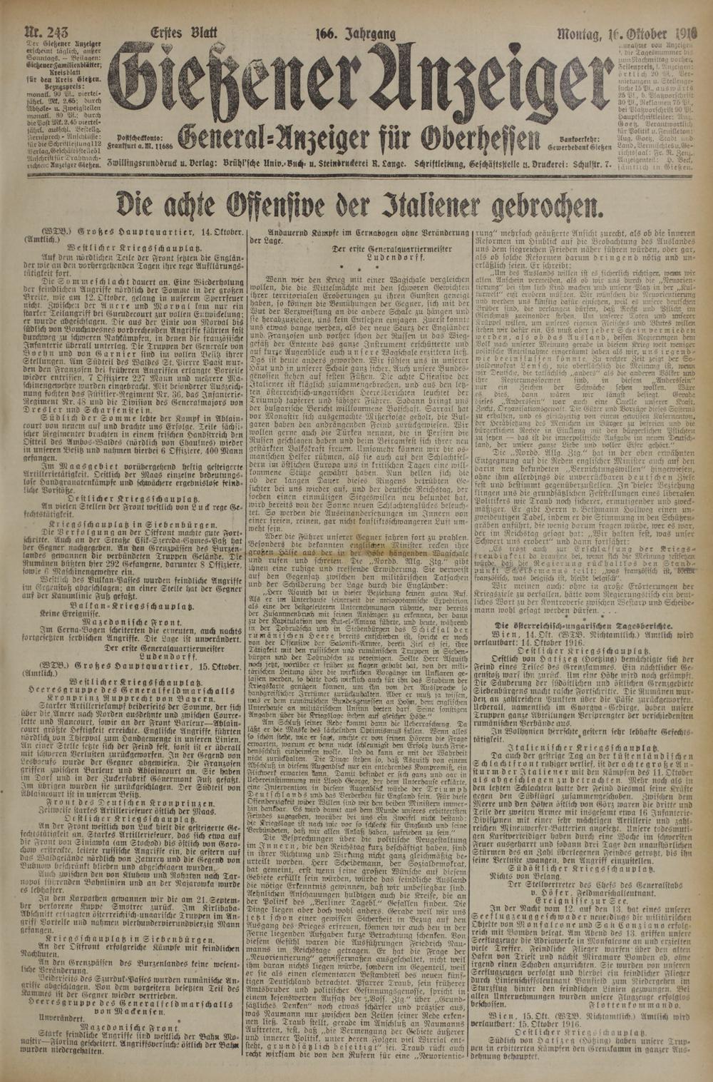 (16.10.1916) Erstes Blatt
