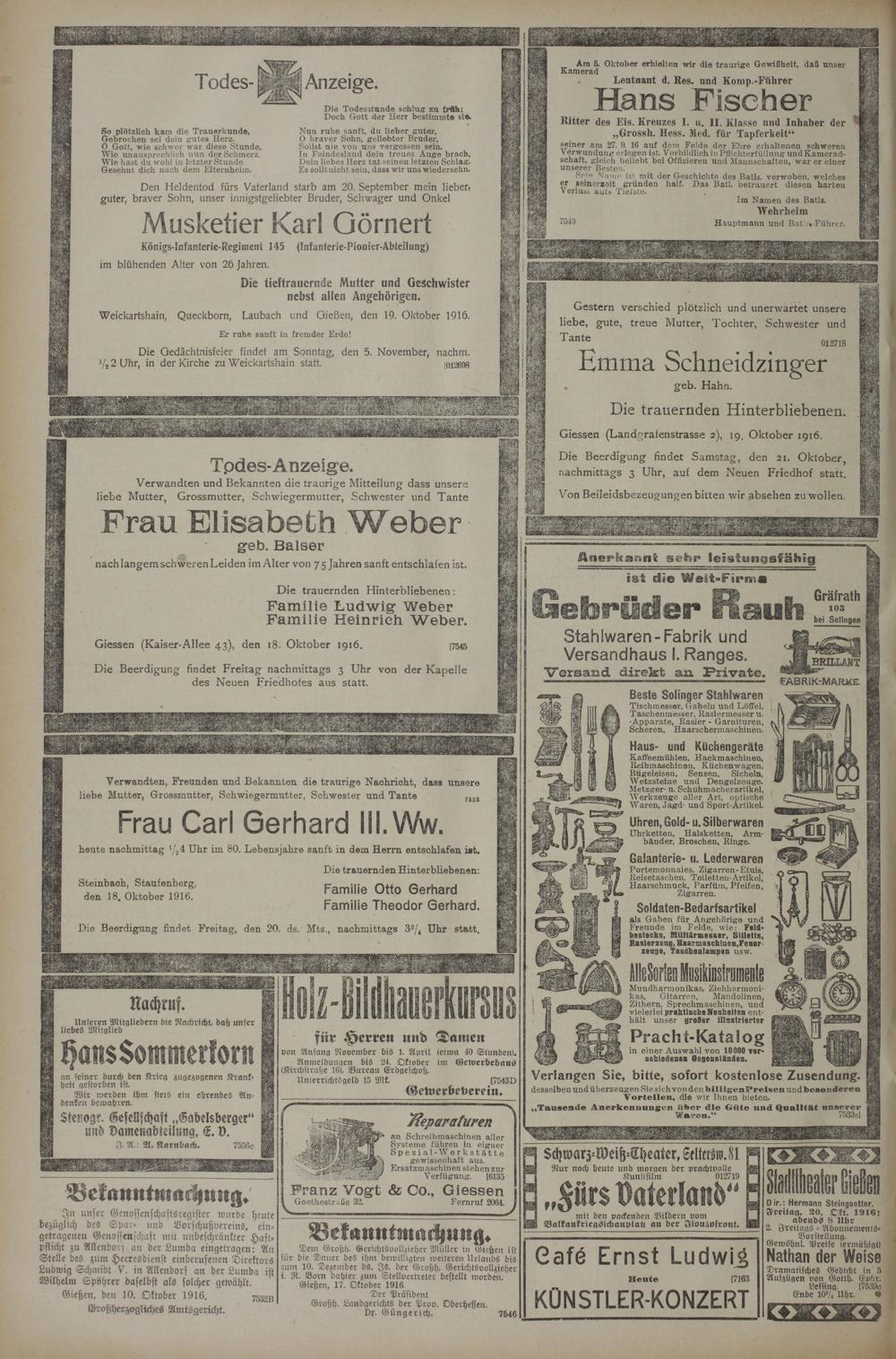 (19.10.1916) Erstes Blatt