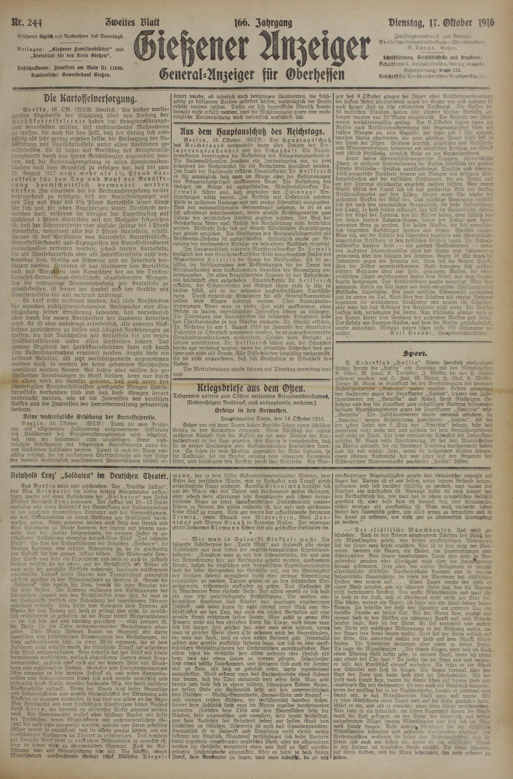 Regionale Zeitungen aus der Zeit des Ersten Weltkrieges