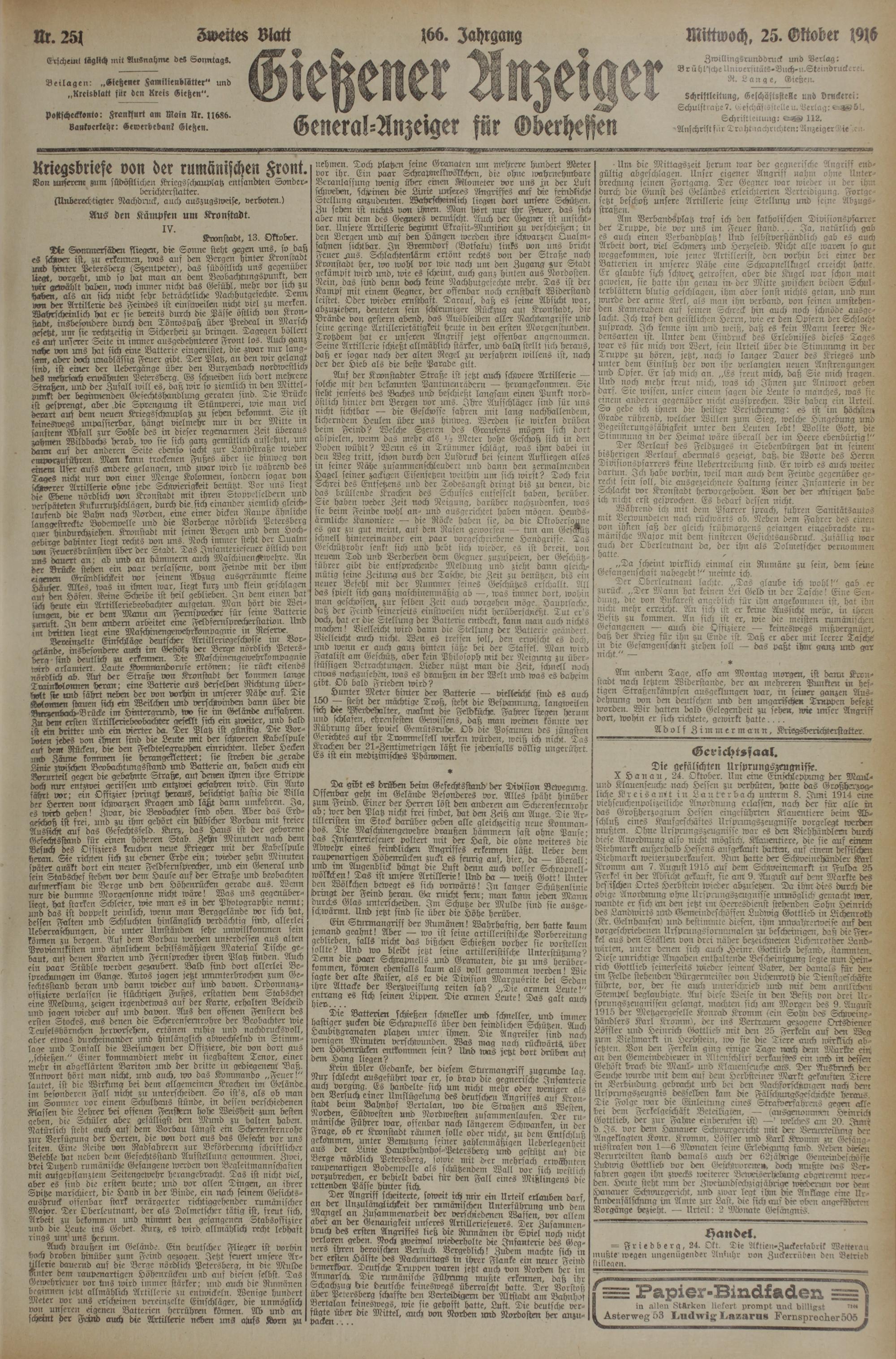 (25.10.1916) Zweites Blatt