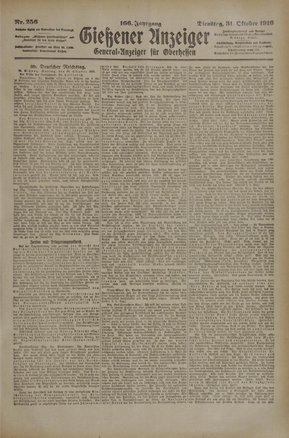 Gießener Anzeiger. 1868-1943