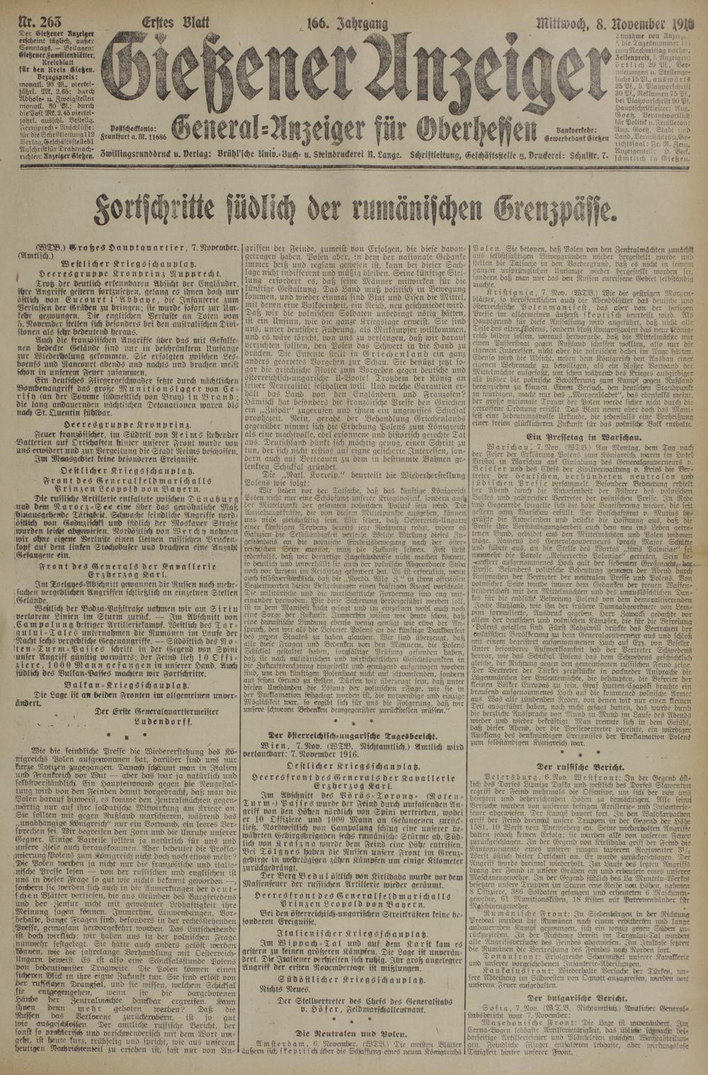 Regionale Zeitungen aus der Zeit des Ersten Weltkrieges