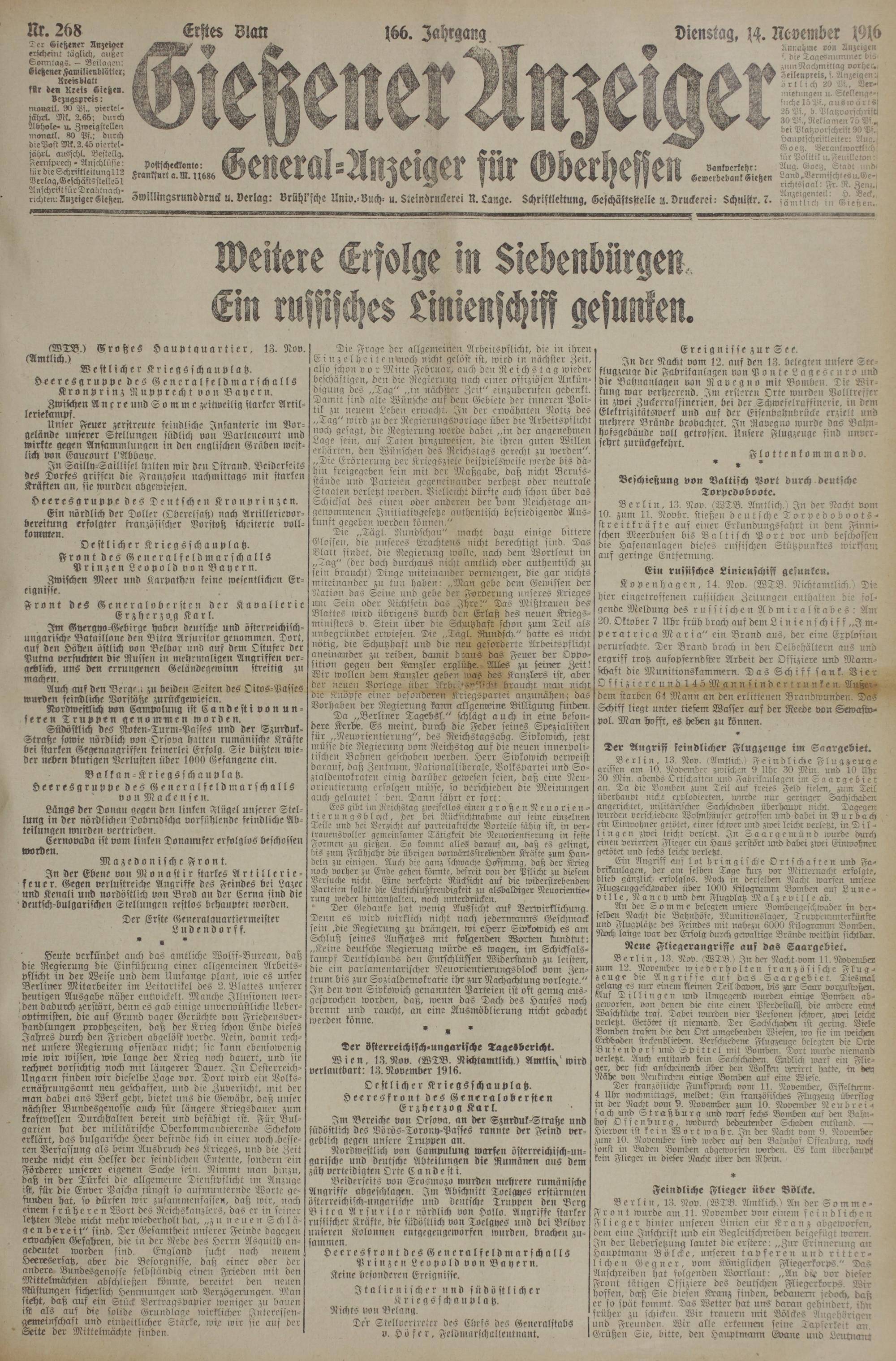 (14.11.1916) Erstes Blatt