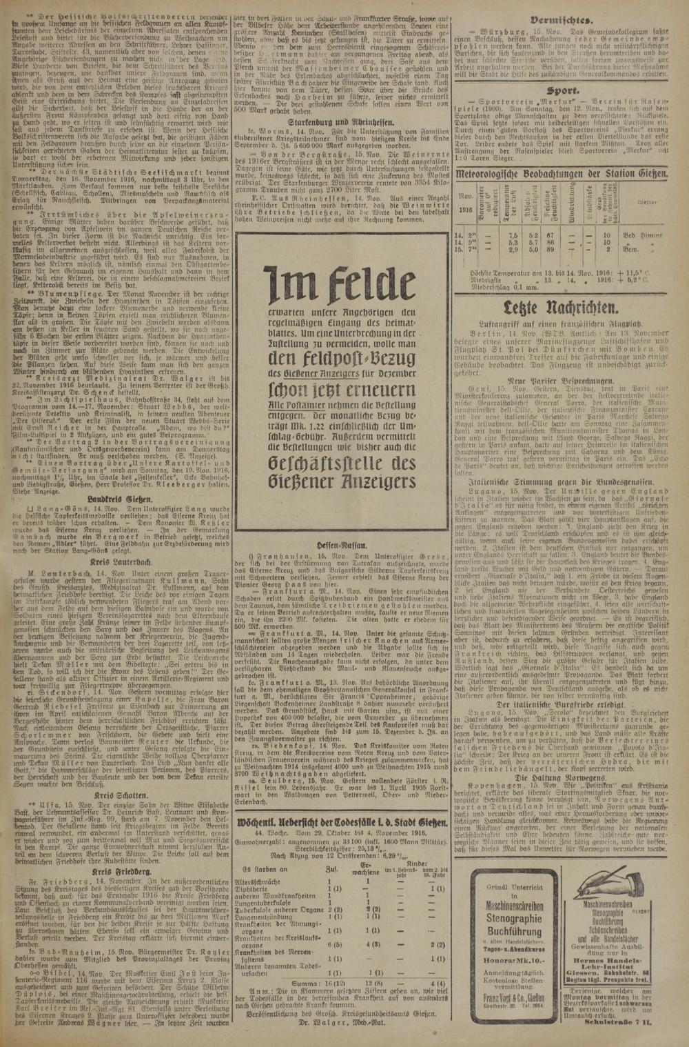 (15.11.1916) Erstes Blatt