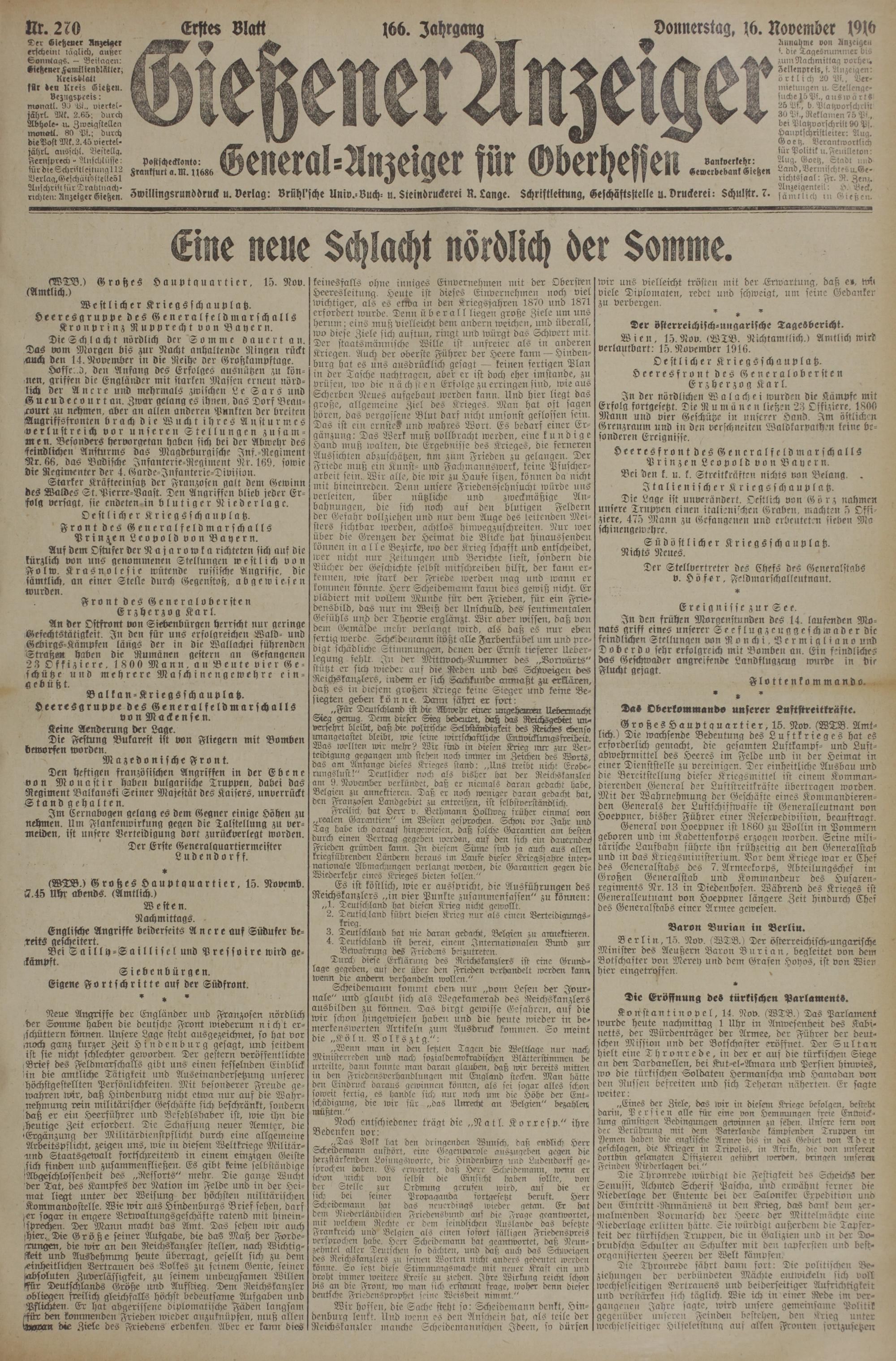 (16.11.1916) Erstes Blatt