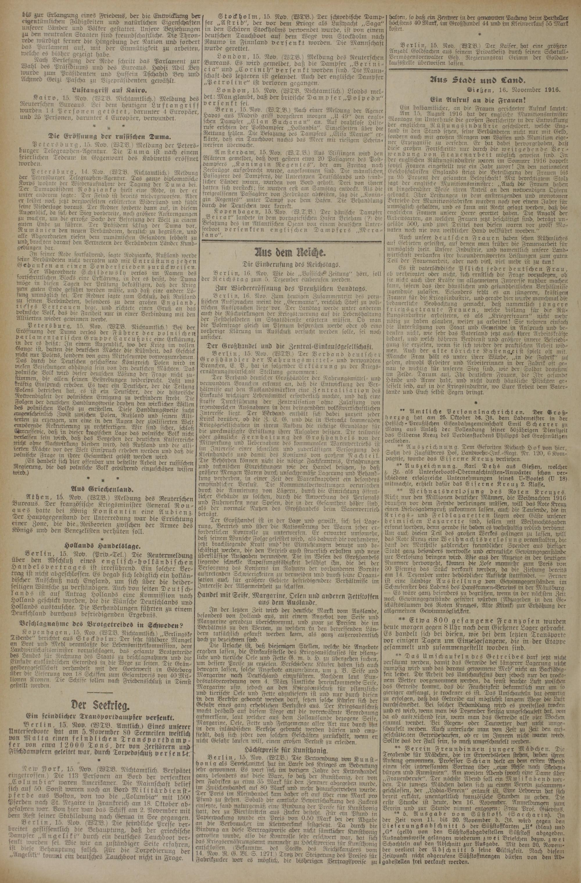 (16.11.1916) Erstes Blatt