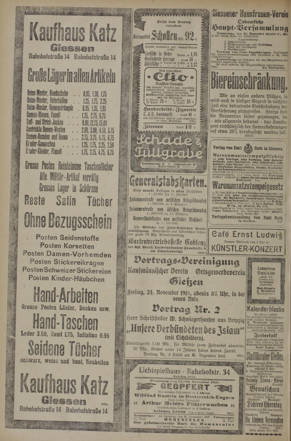 (21.11.1916) Erstes Blatt