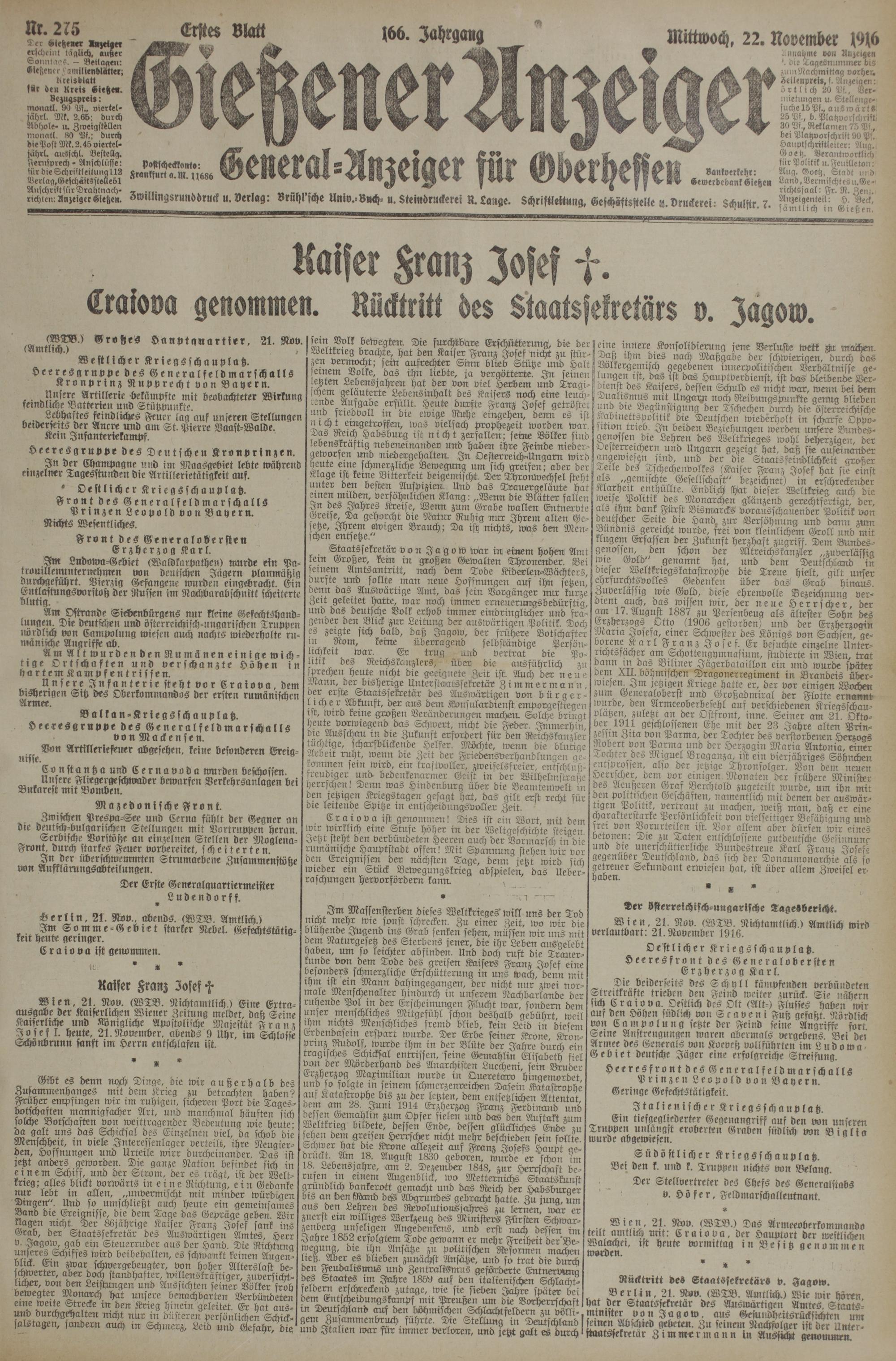 (22.11.1916) Erstes Blatt
