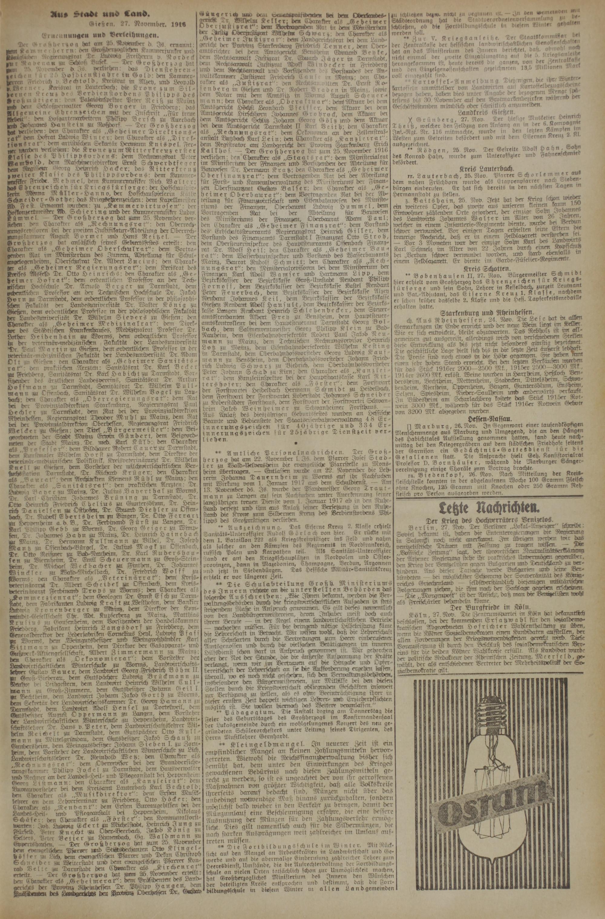 (27.11.1916) Erstes Blatt