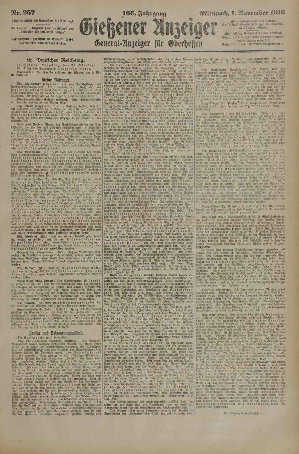 Gießener Anzeiger. 1868-1943