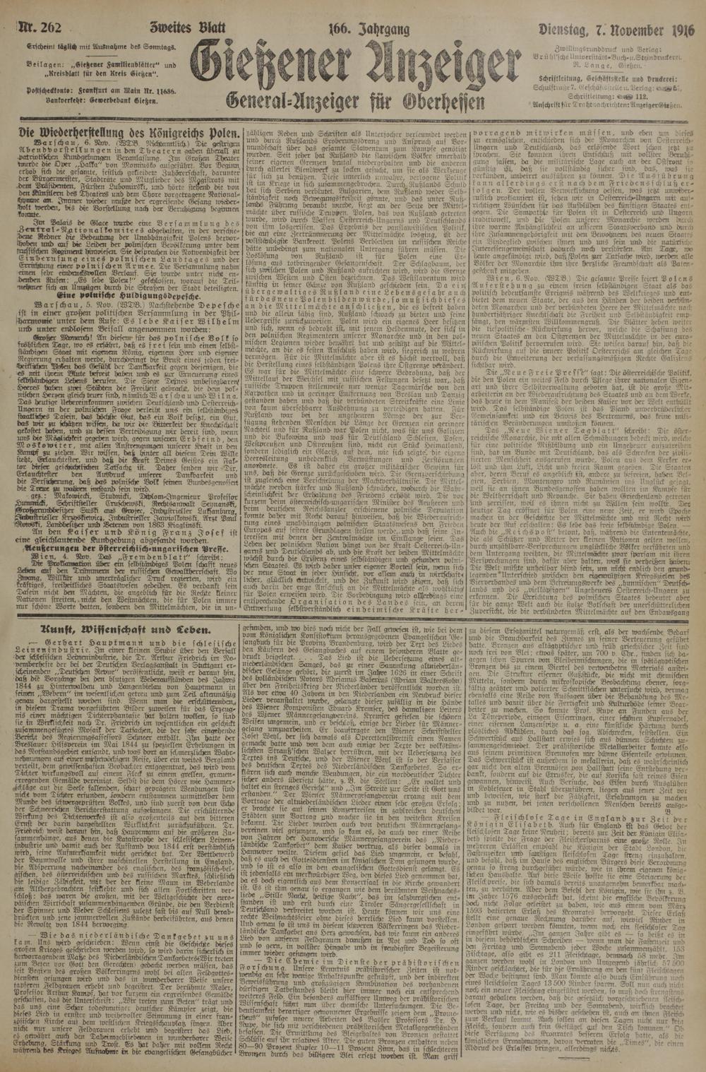 (7.11.1916) Zweites Blatt