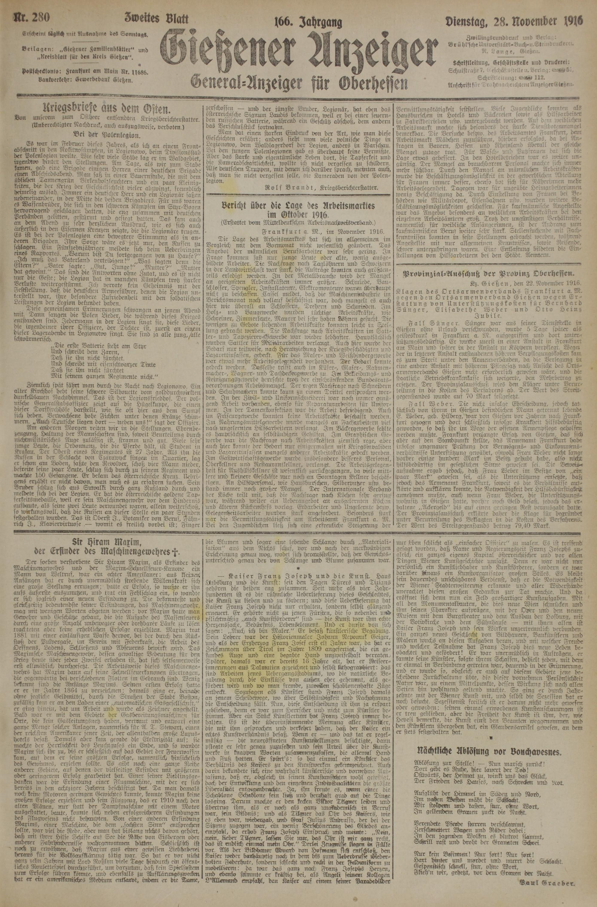 (28.11.1916) Zweites Blatt