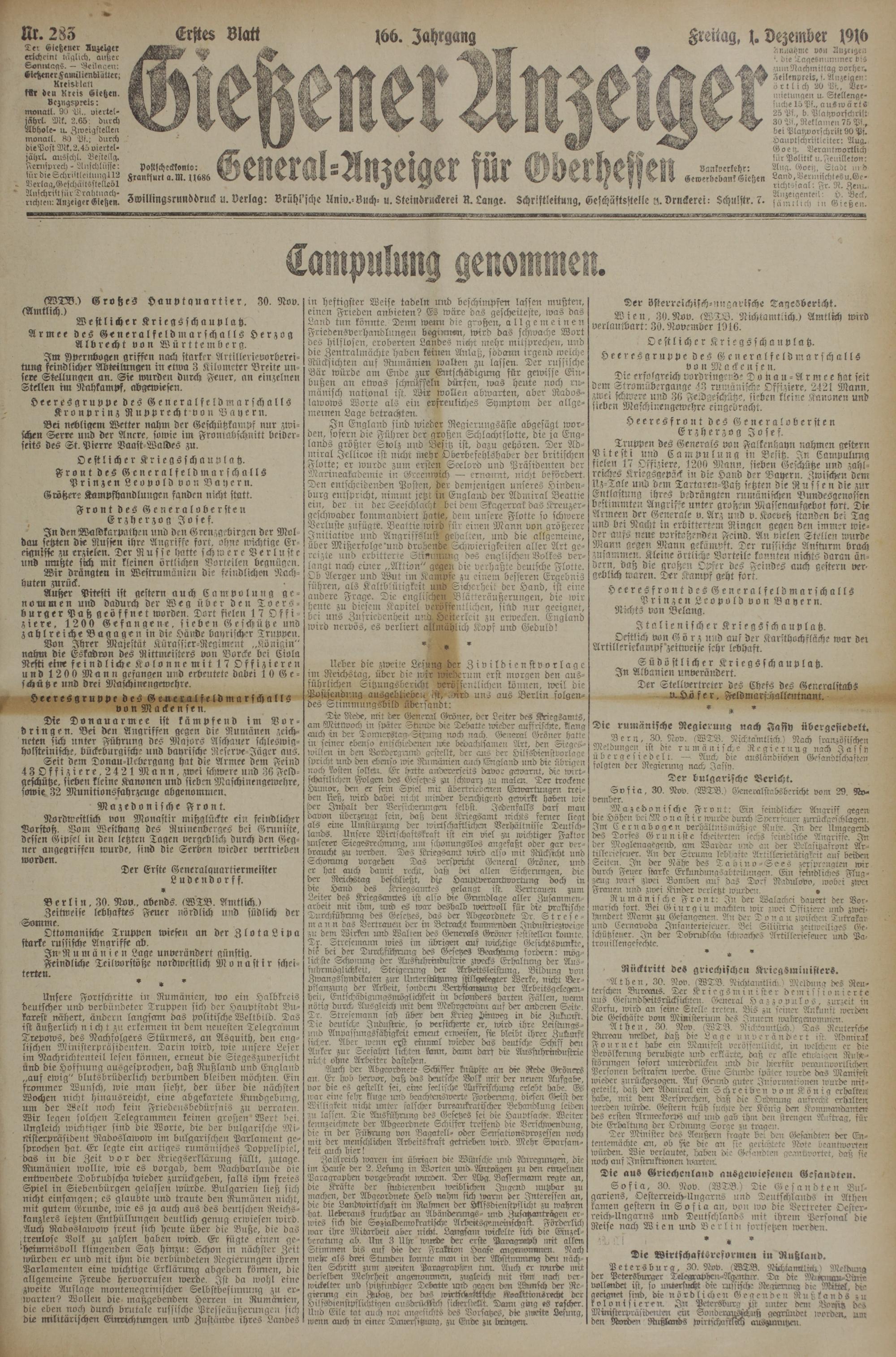 Regionale Zeitungen aus der Zeit des Ersten Weltkrieges