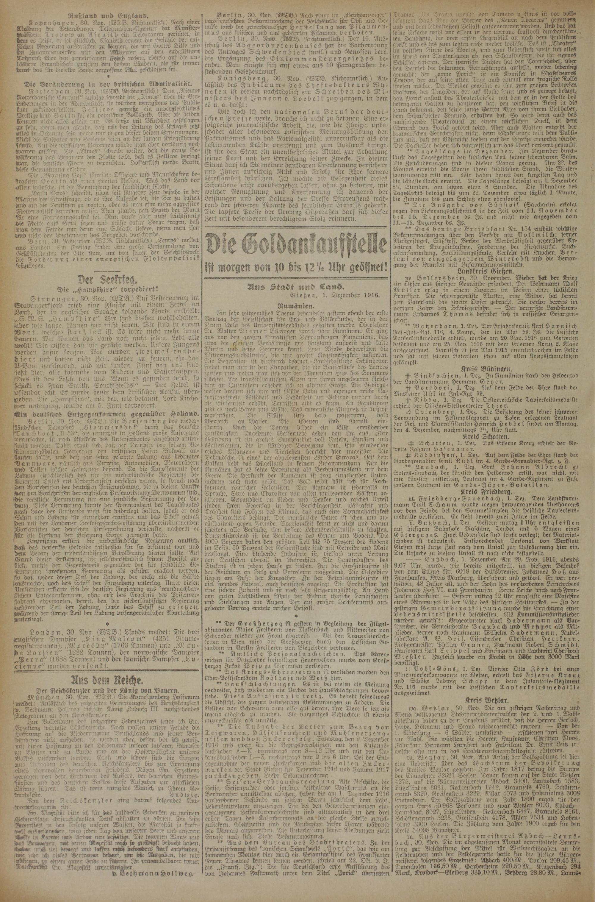 (1.12.1916) Erstes Blatt