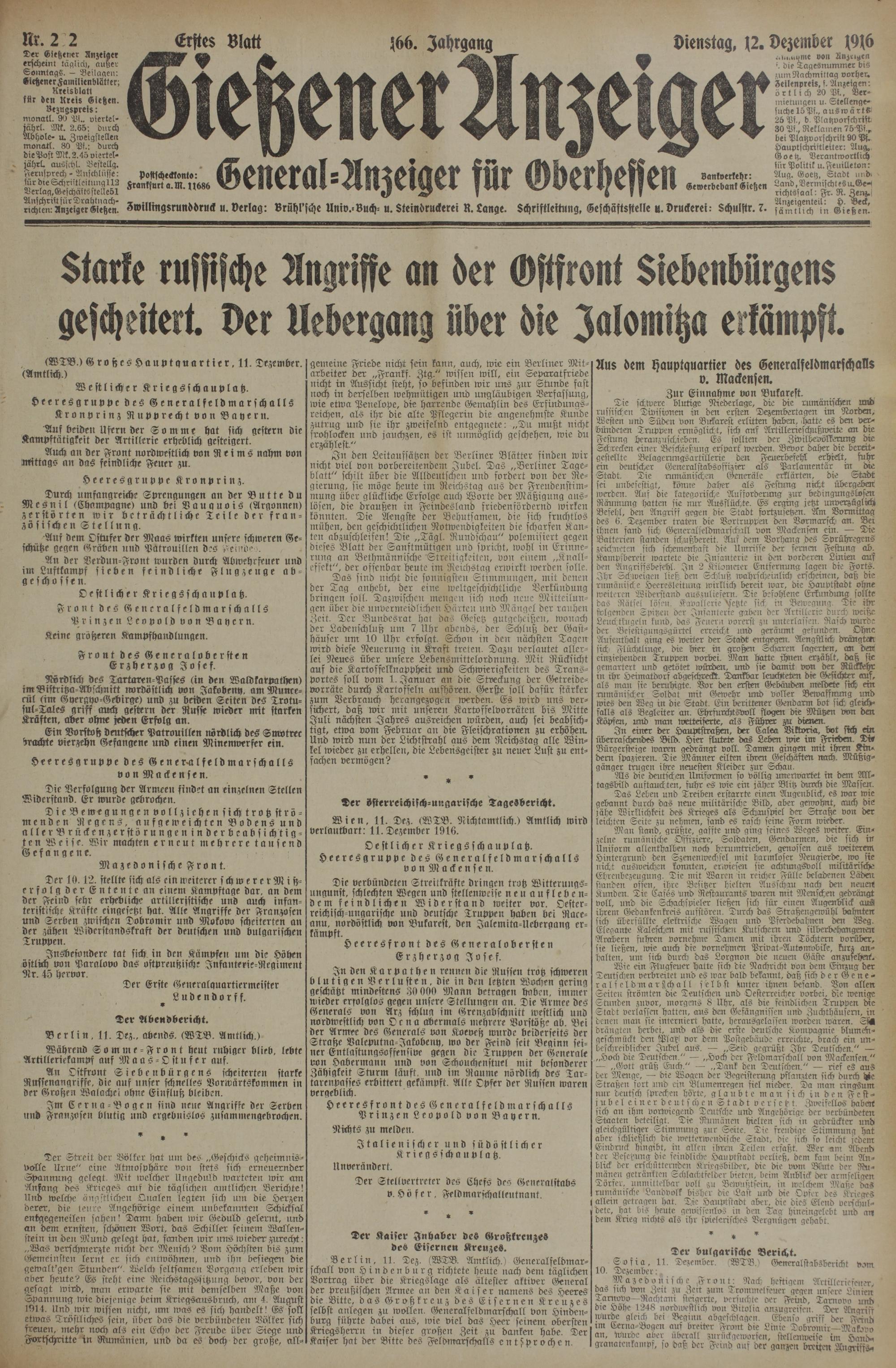 (12.12.1916) Erstes Blatt