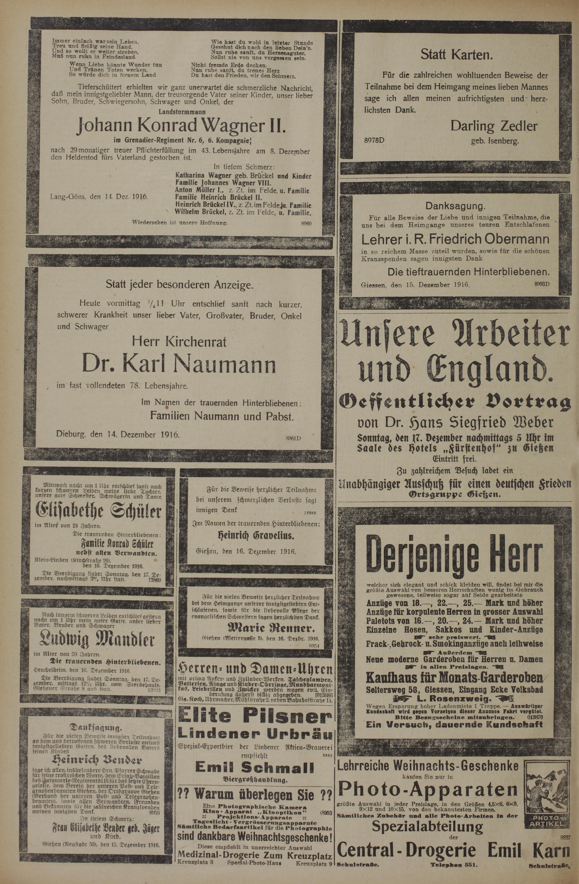 (16.12.1916) Erstes Blatt