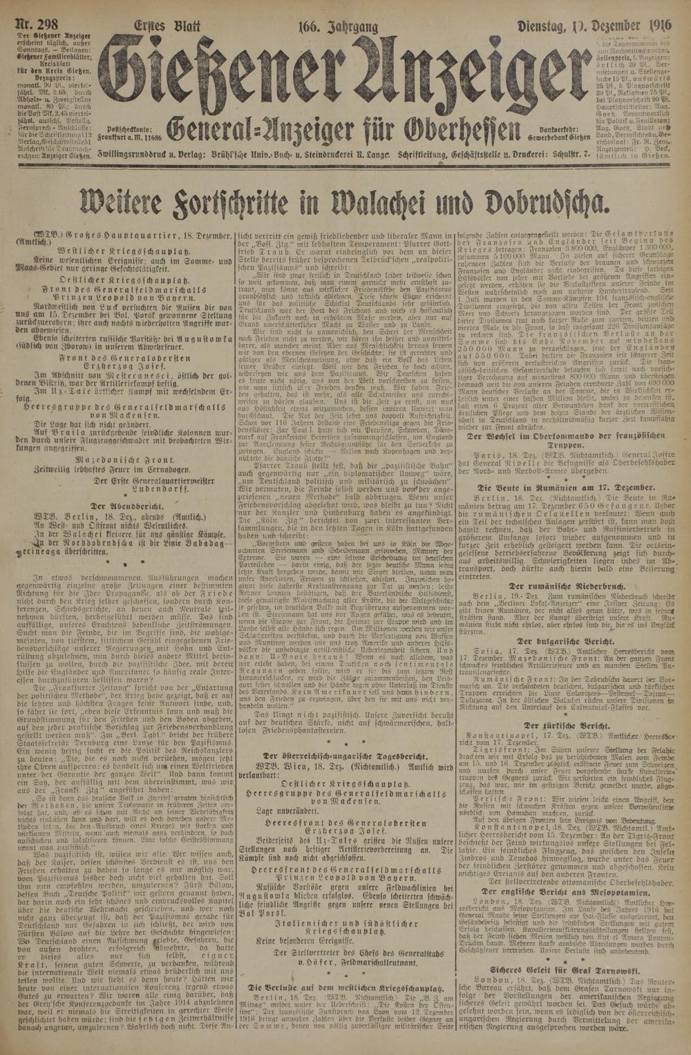 Regionale Zeitungen aus der Zeit des Ersten Weltkrieges