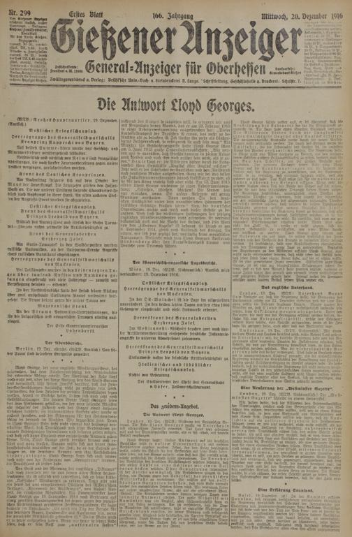 Regionale Zeitungen aus der Zeit des Ersten Weltkrieges