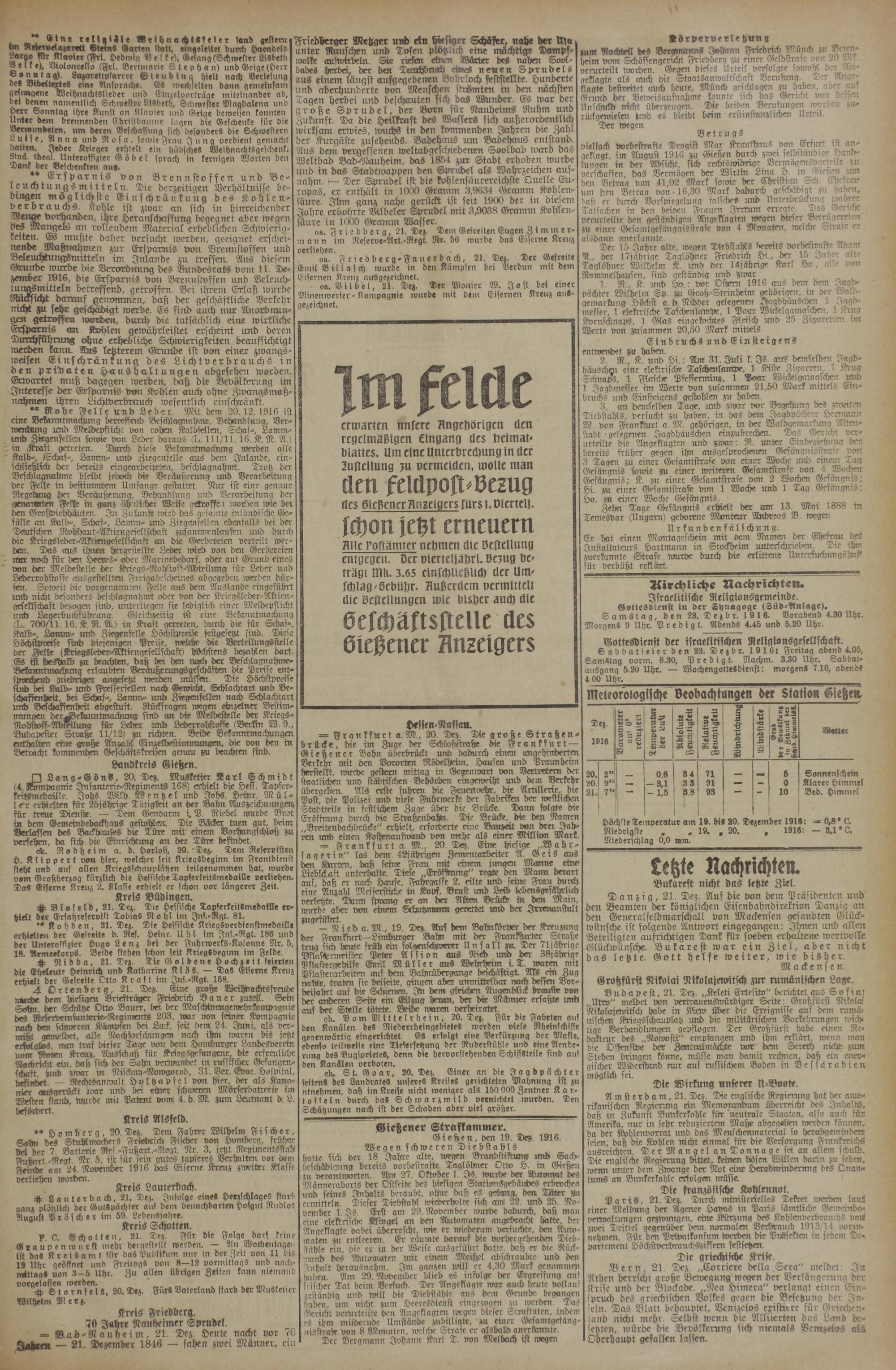 (21.12.1916) Erstes Blatt