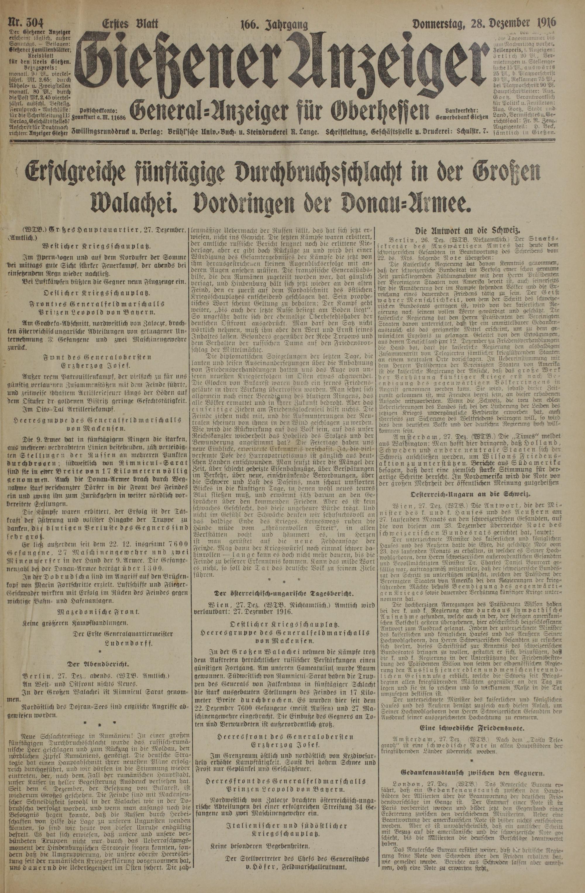 Der Erste Weltkrieg im Spiegel hessischer Regionalzeitungen