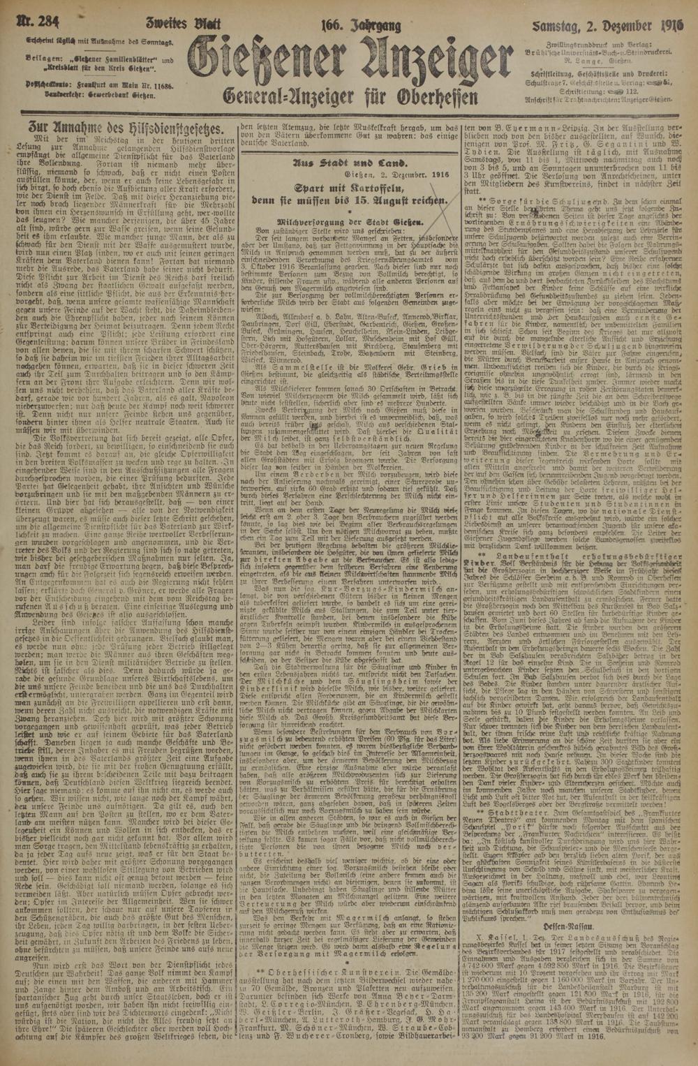 (2.12.1916) Zweites Blatt
