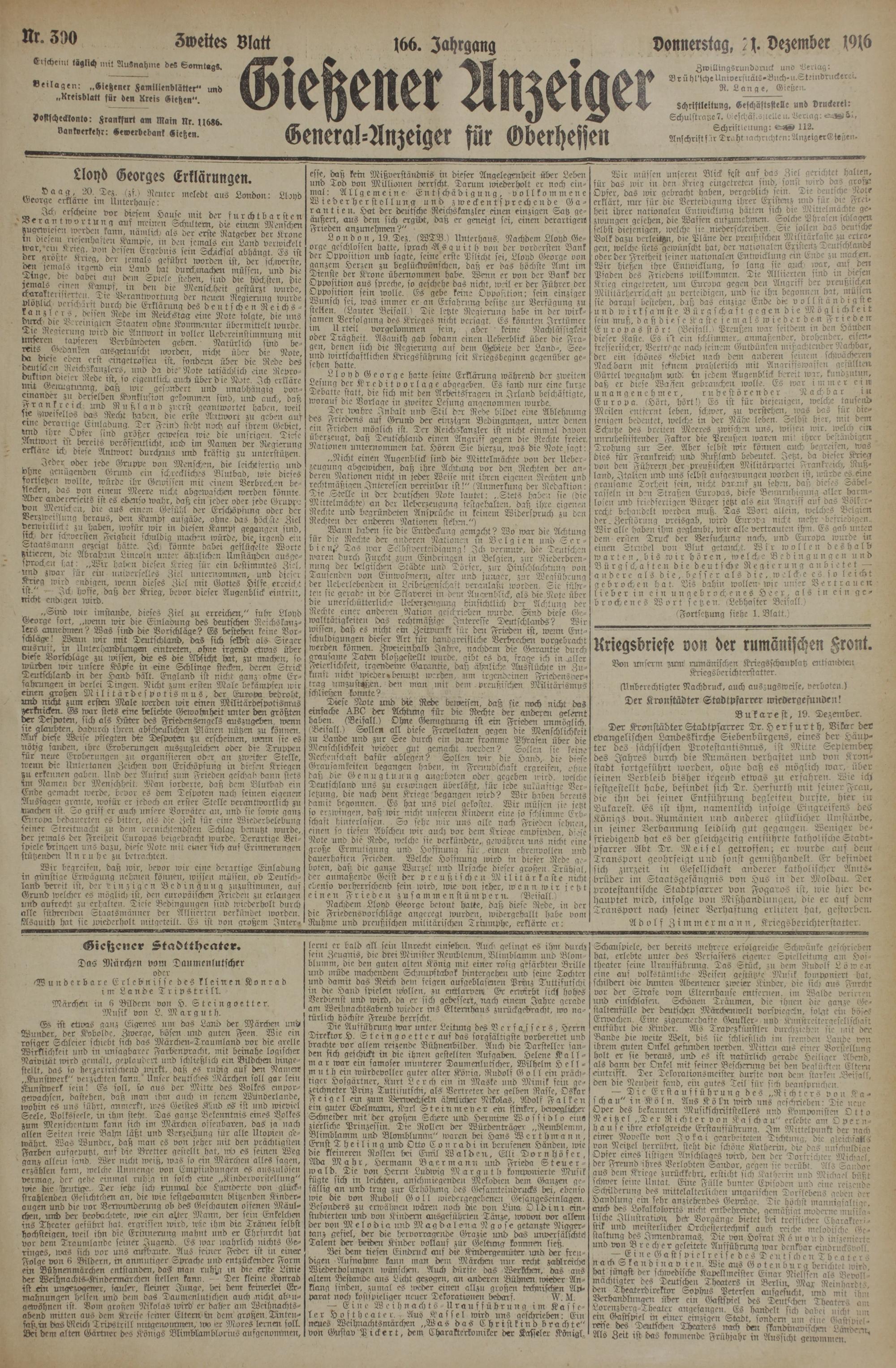 Regionale Zeitungen aus der Zeit des Ersten Weltkrieges