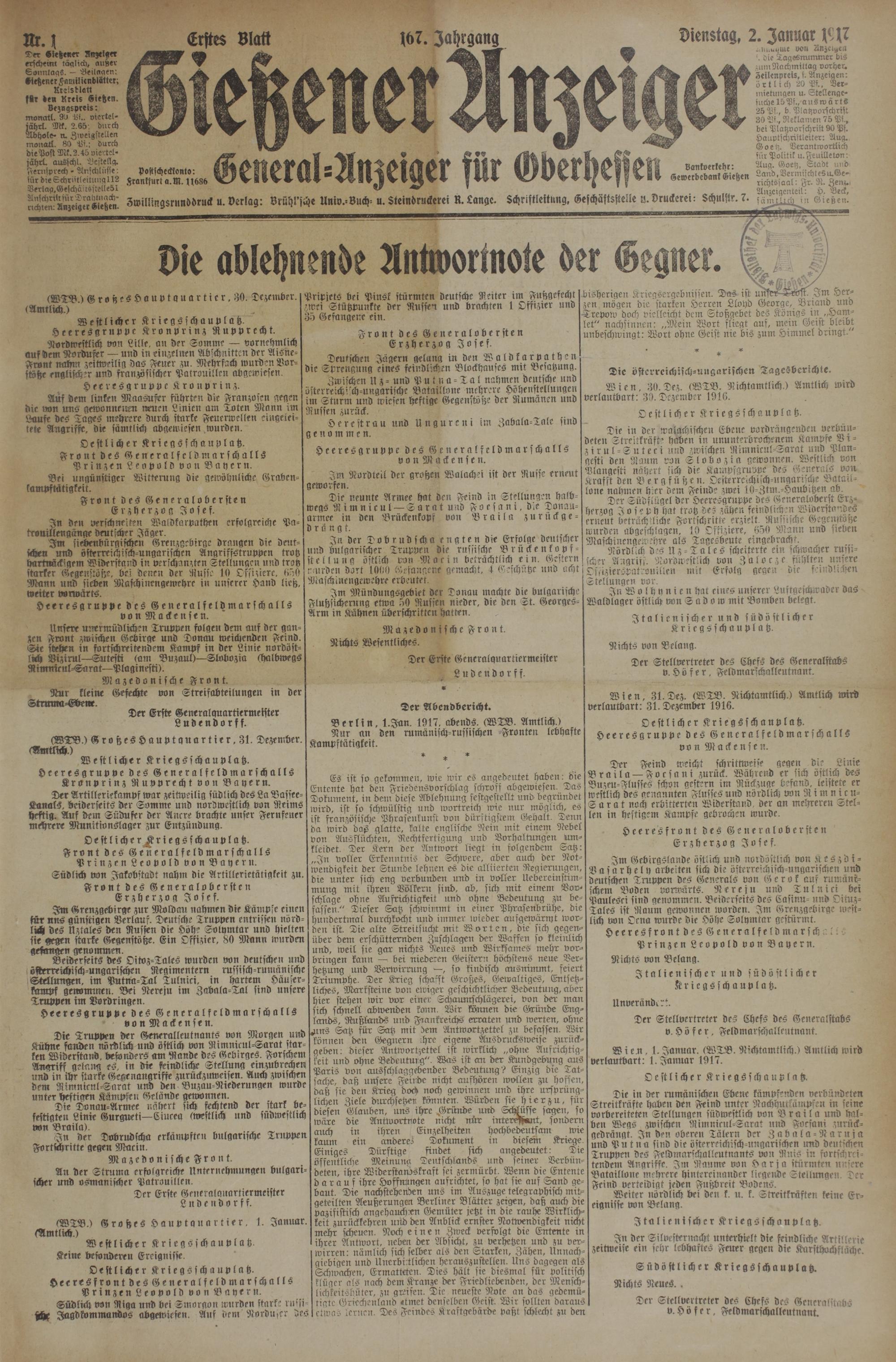 (2.1.1917) Erstes Blatt