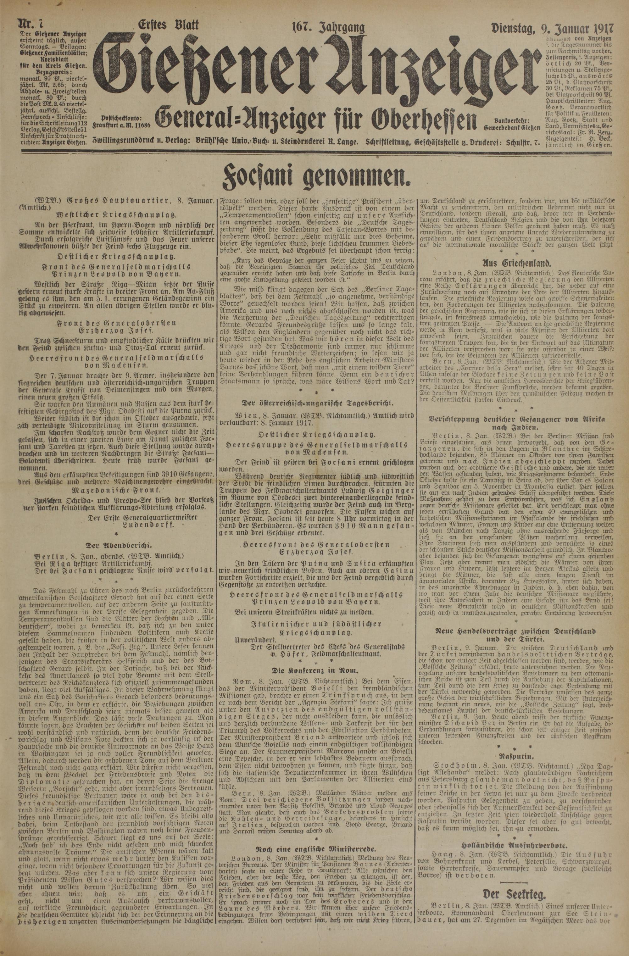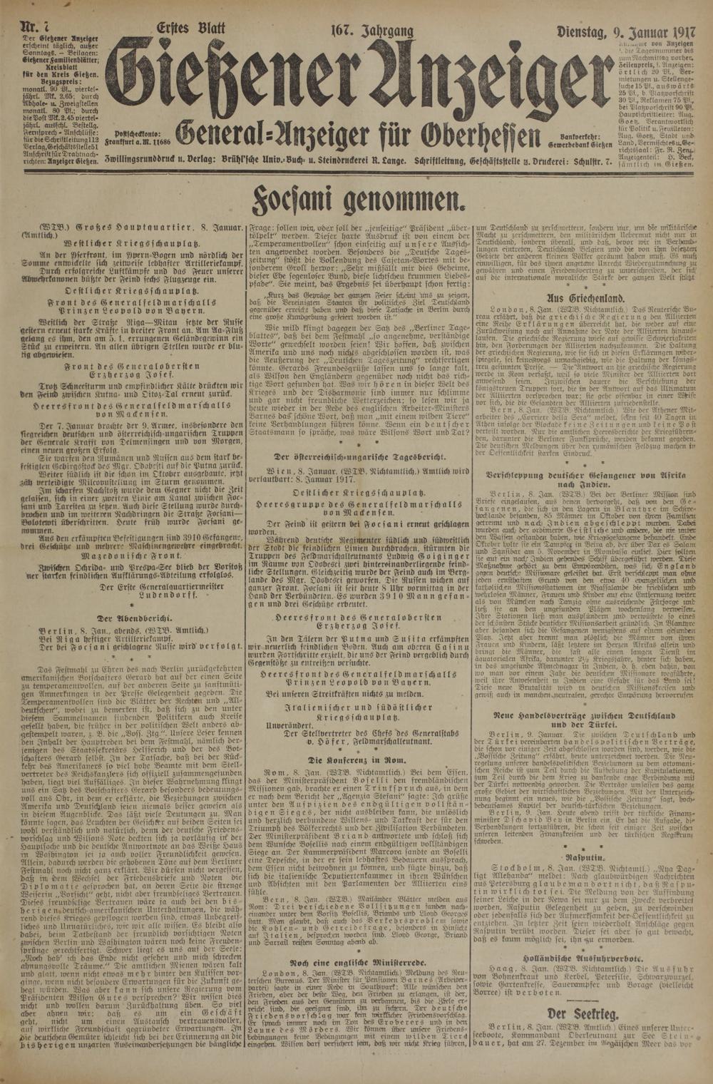 (9.1.1917) Erstes Blatt