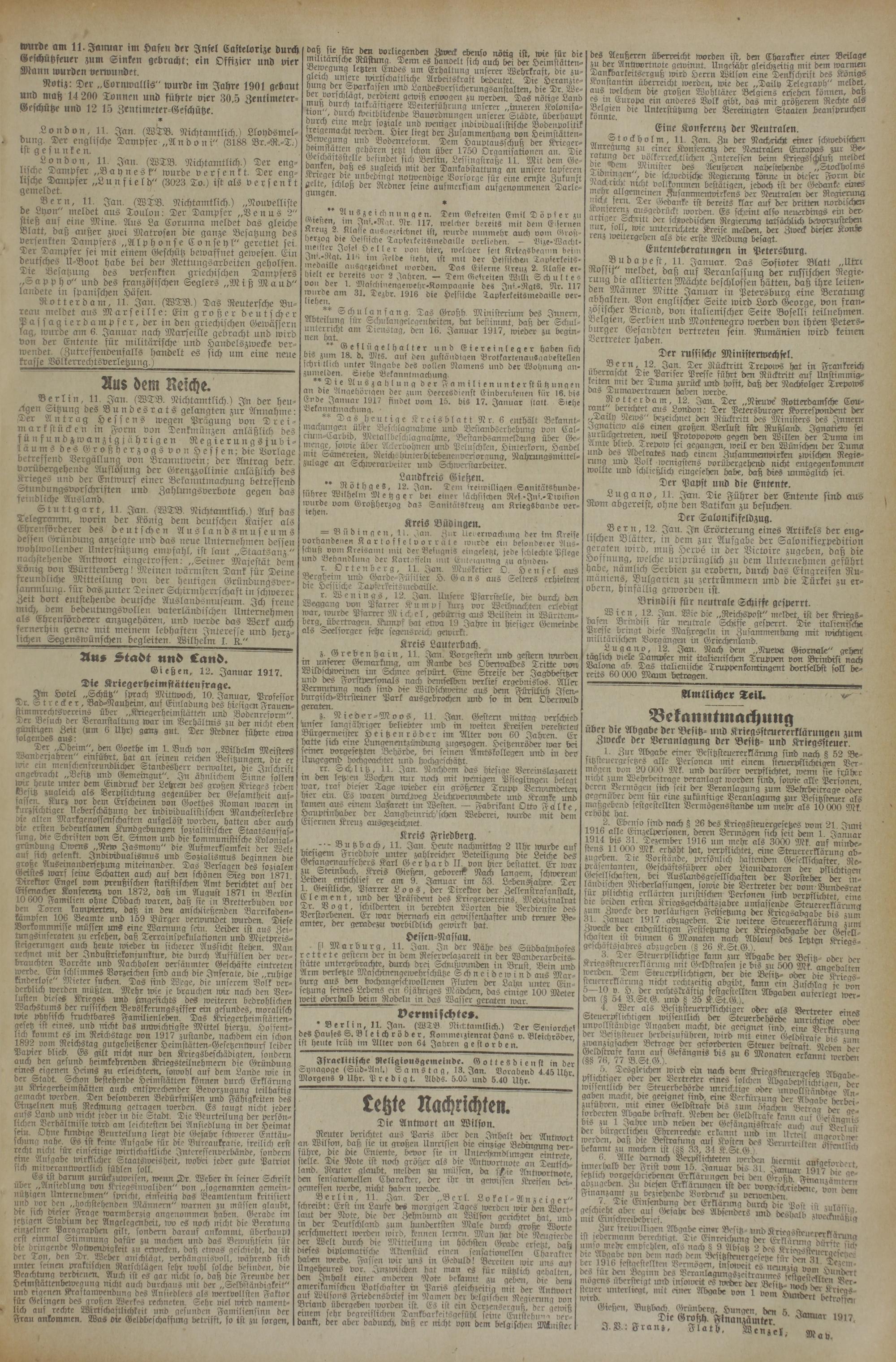 (12.1.1917) Erstes Blatt