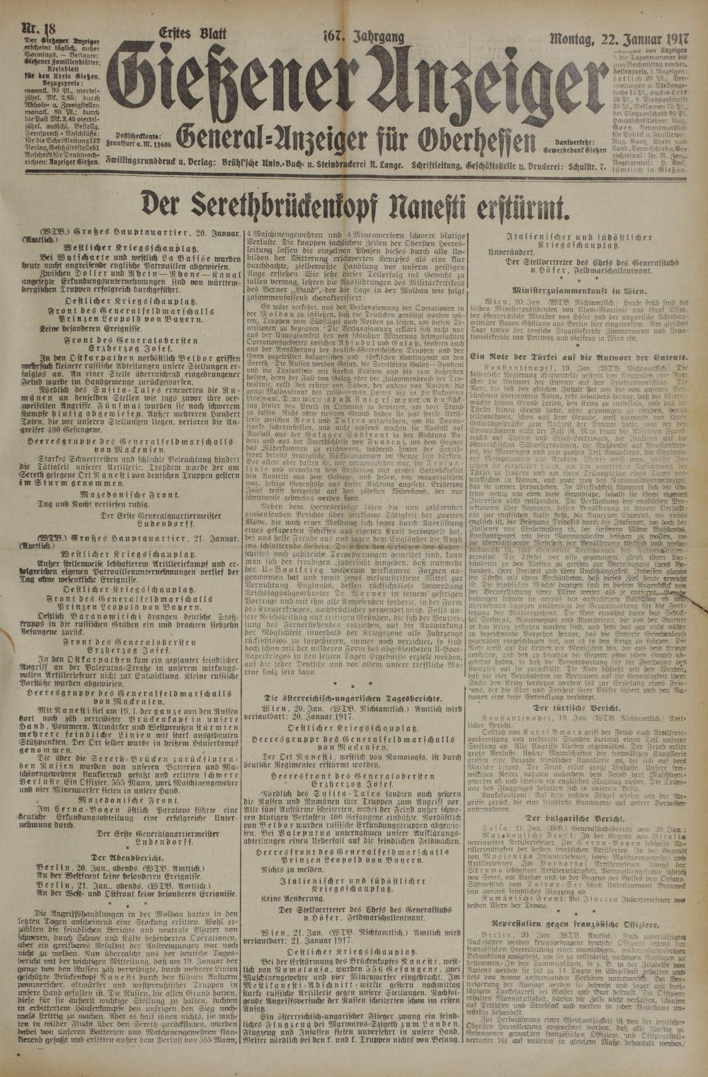 Regionale Zeitungen aus der Zeit des Ersten Weltkrieges